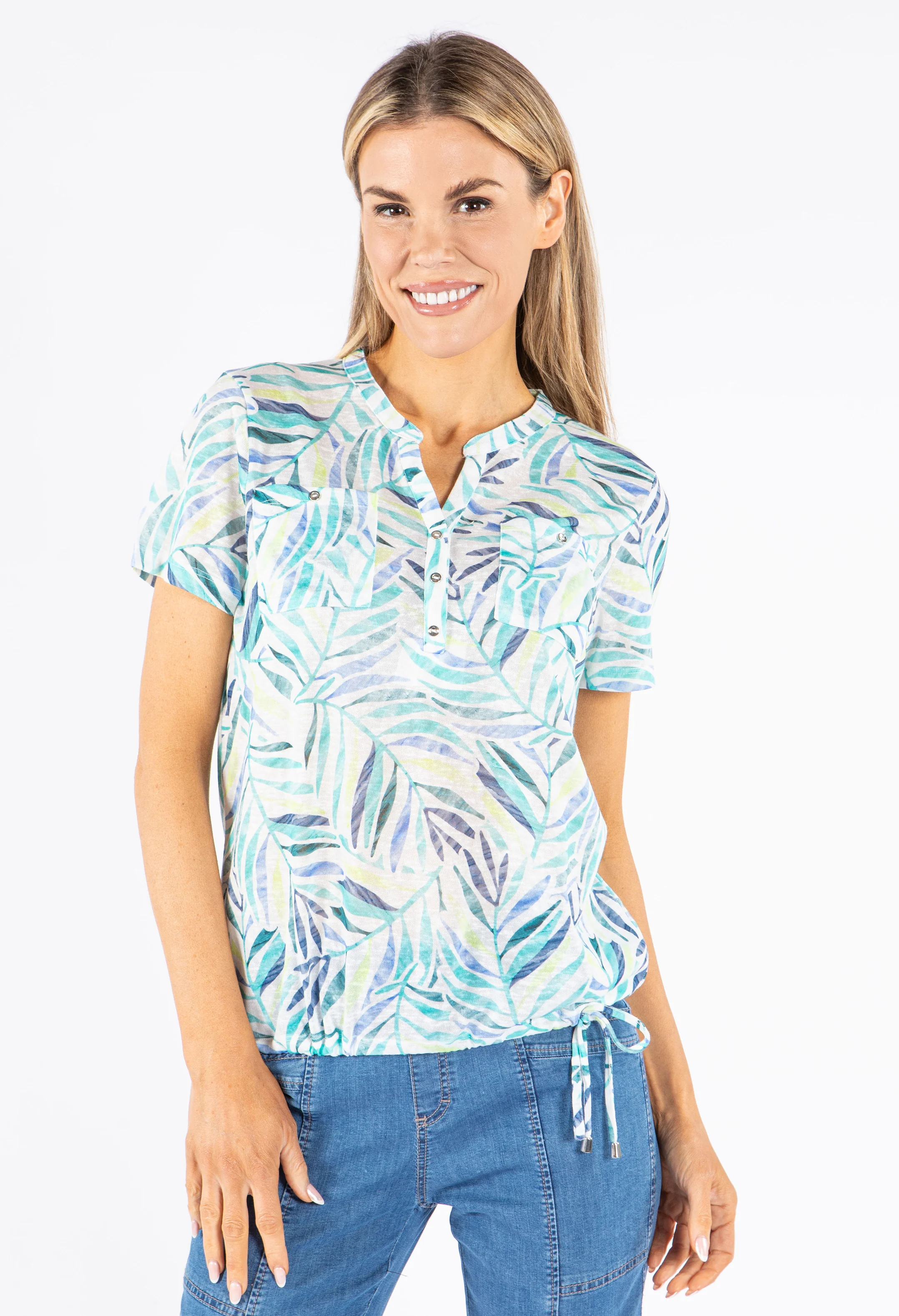 Palm Print Front Pocket Top