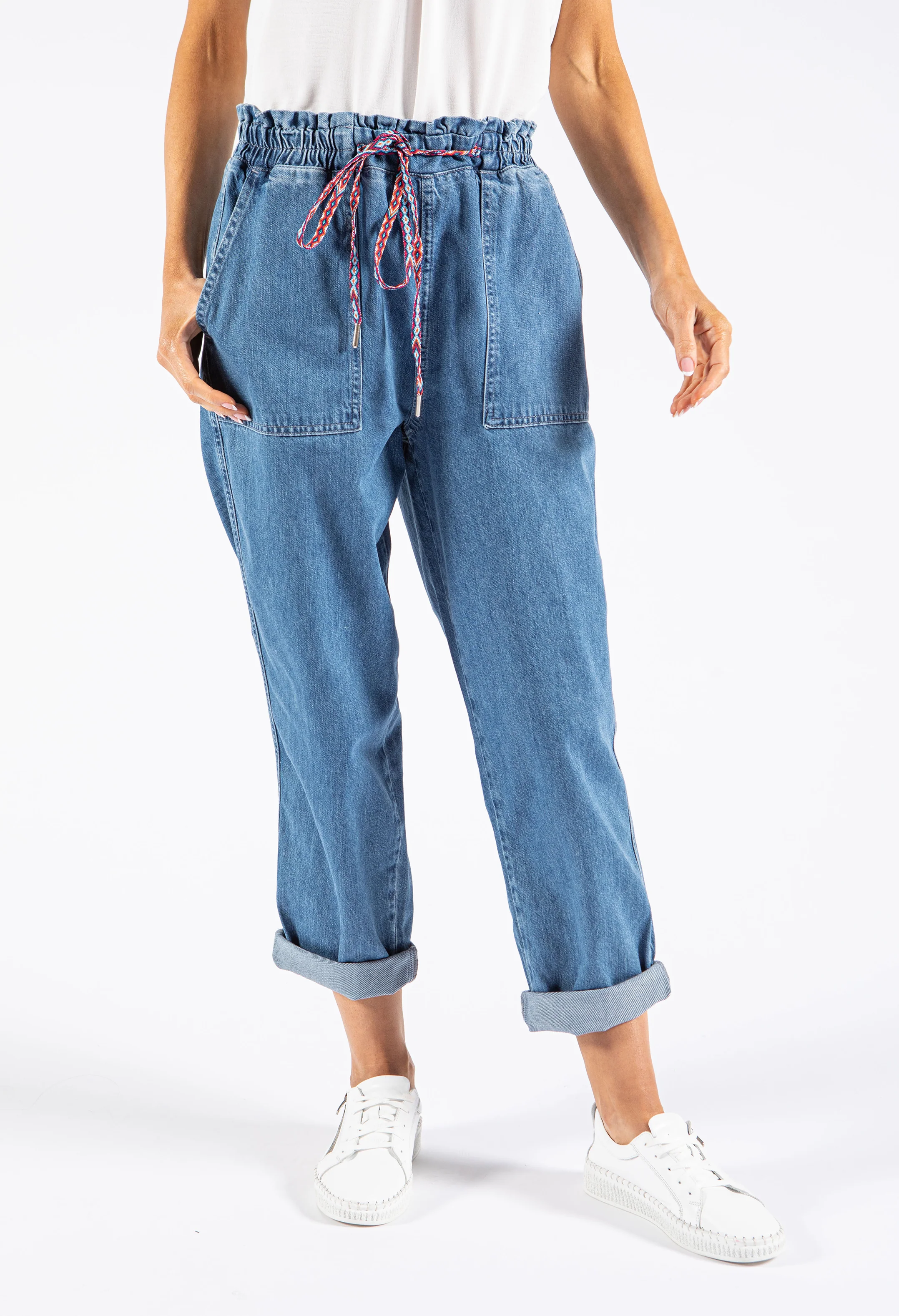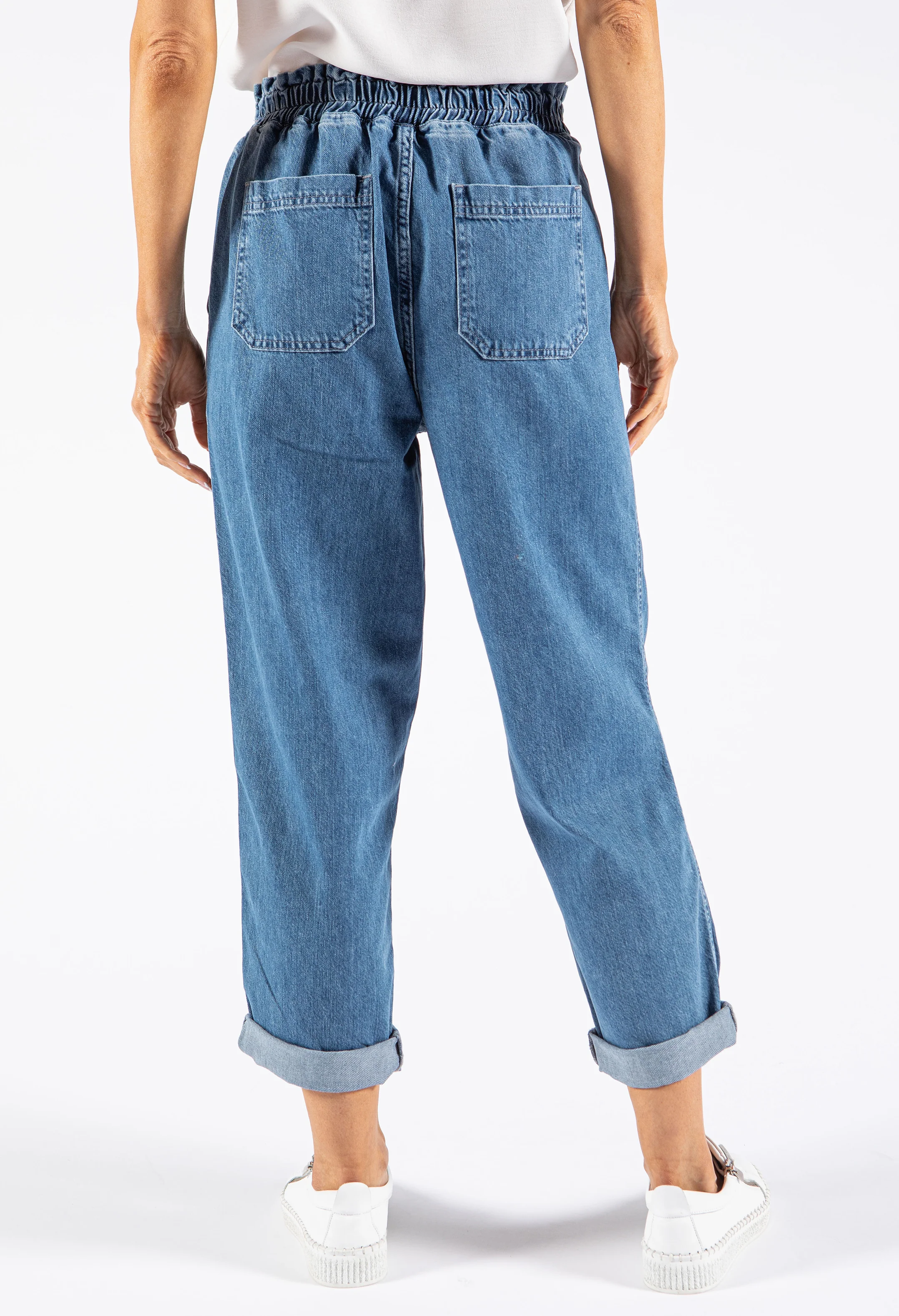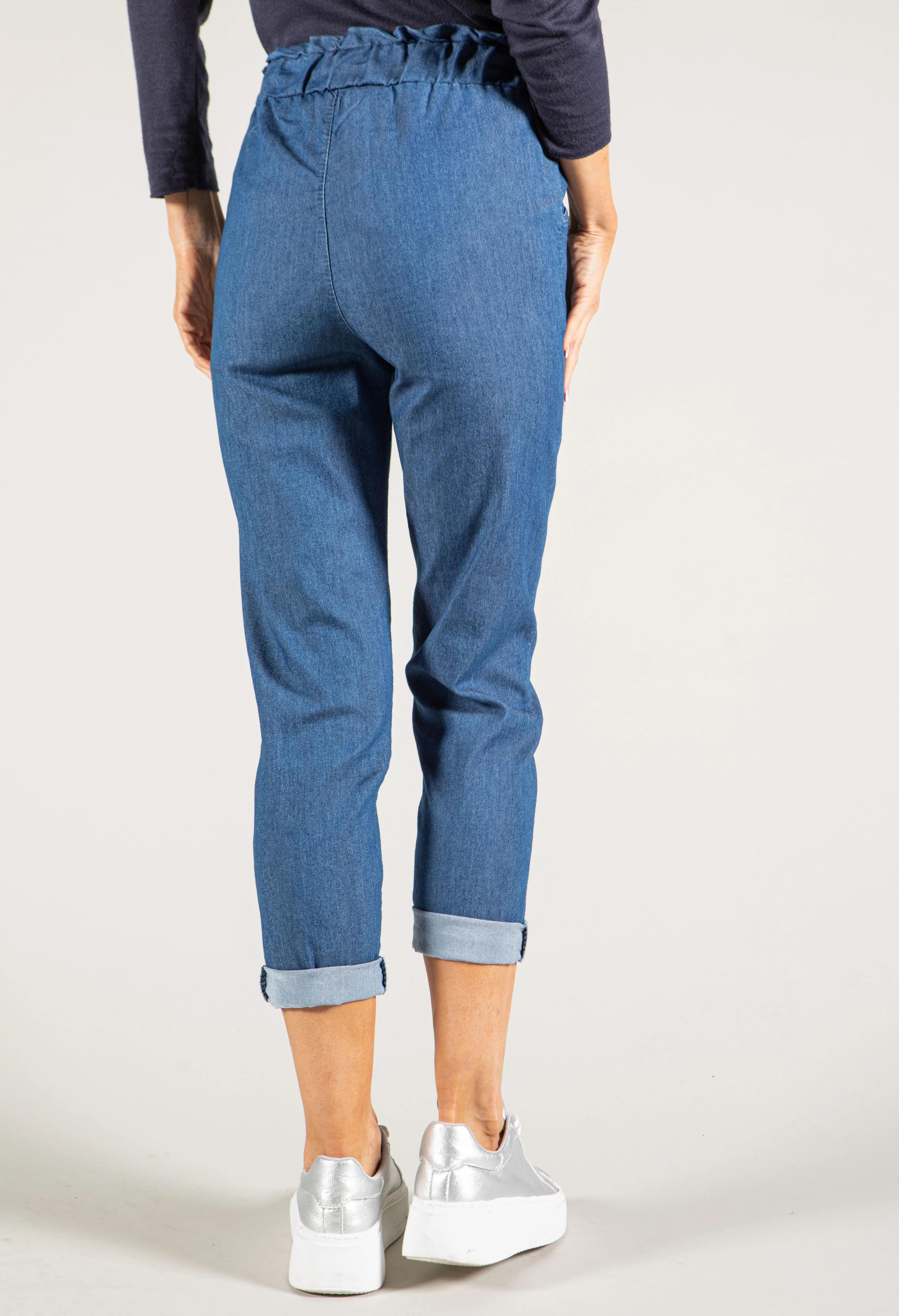 Paper Bag Style Denim Trousers