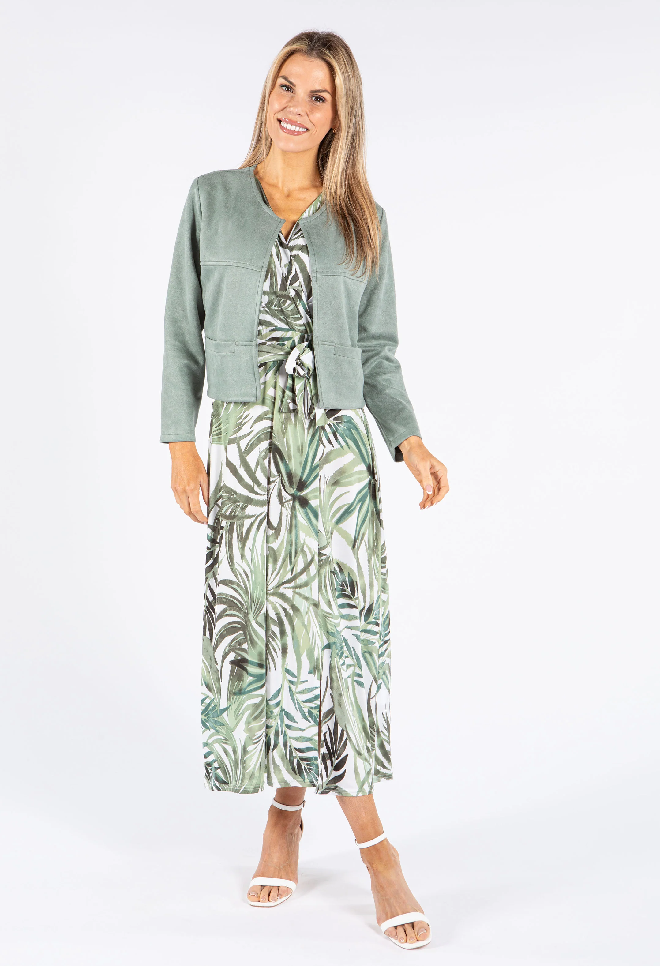 Palm Print Waisted Dress