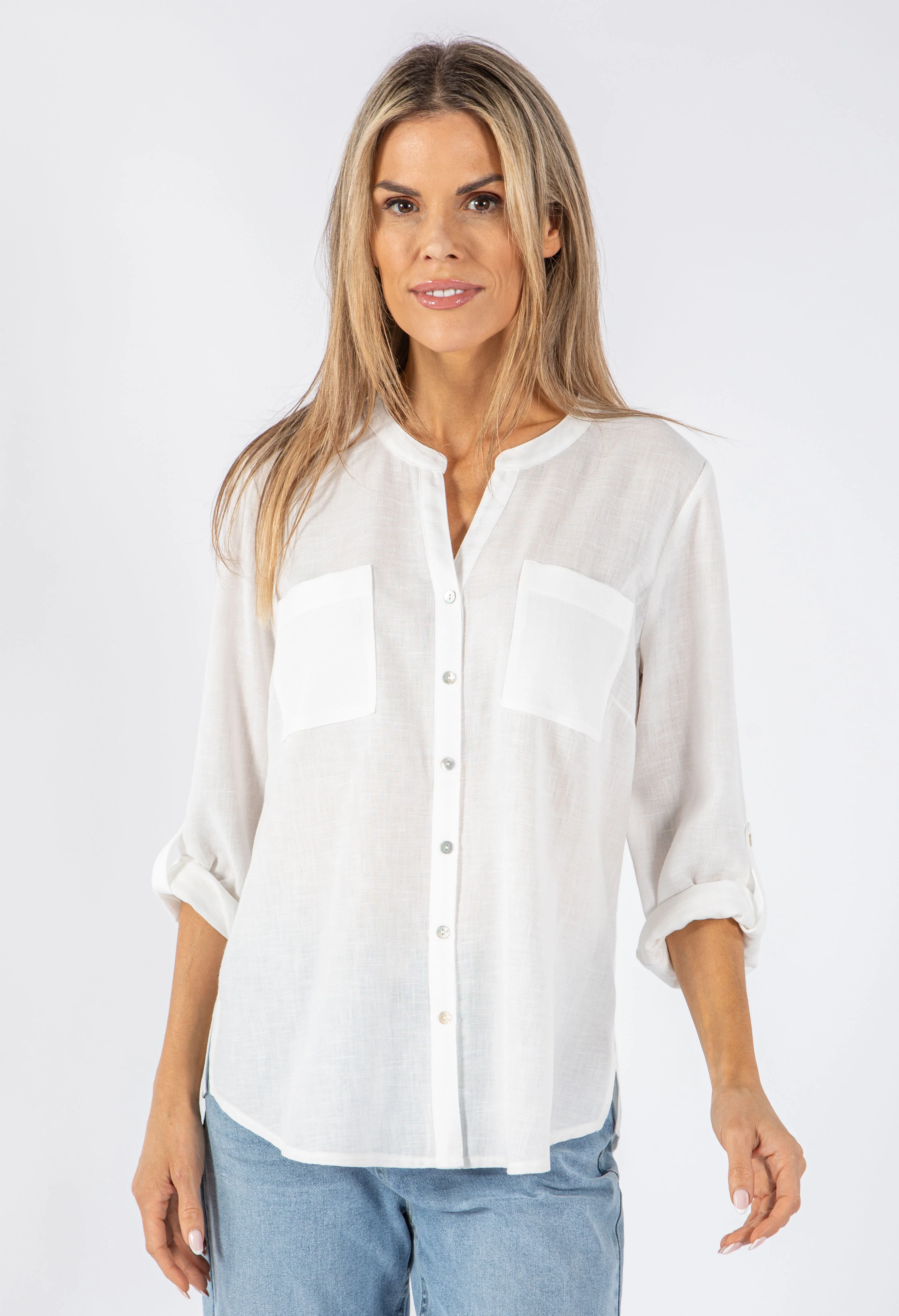Long Sleeve Flange Shoulder Wide Collar Neck Zip Front Woven Jacket