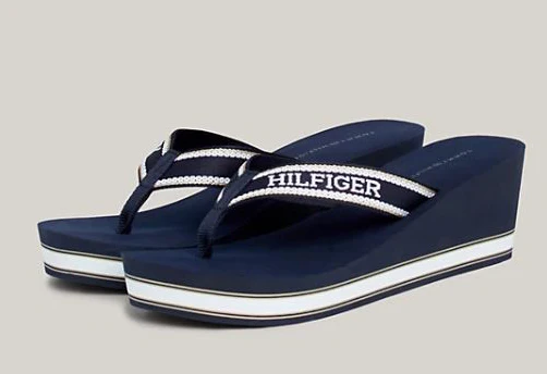 LOGO STRAP WEDGE HEEL BEACH SANDALS