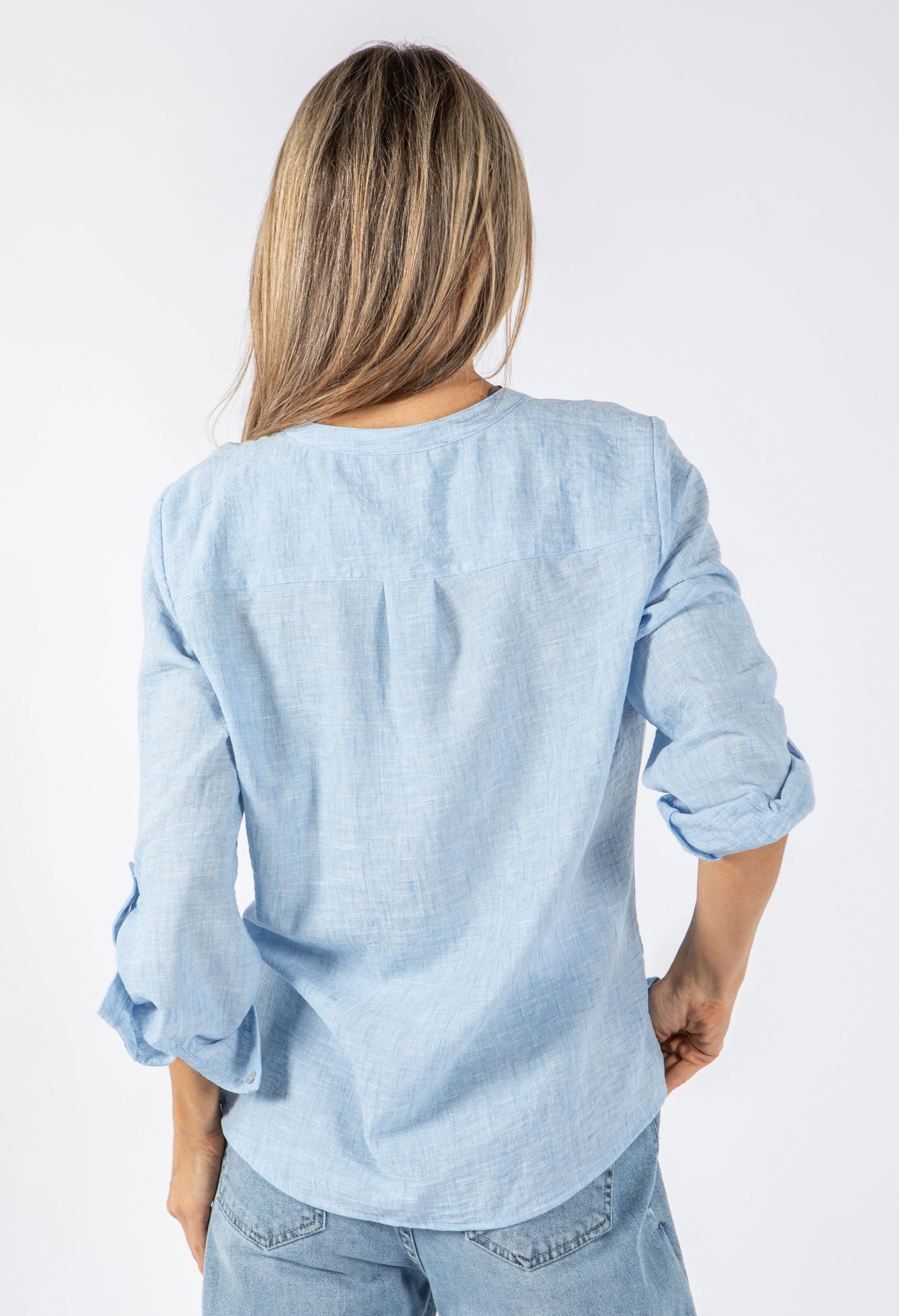 Long Sleeve Crew Neck Button Placket Knit Top with Chain Detail