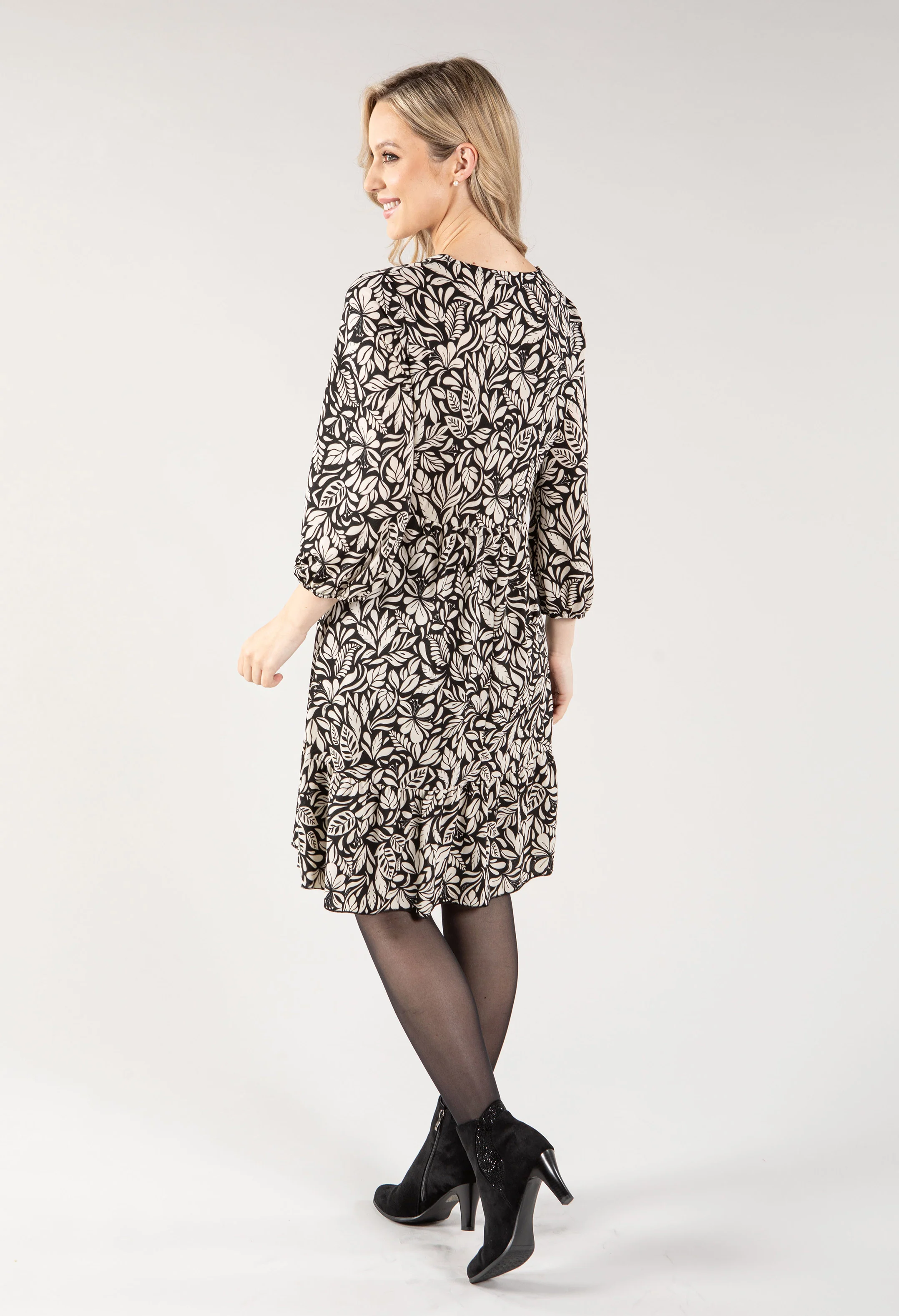 Leaf Print Tiered Hem Dress