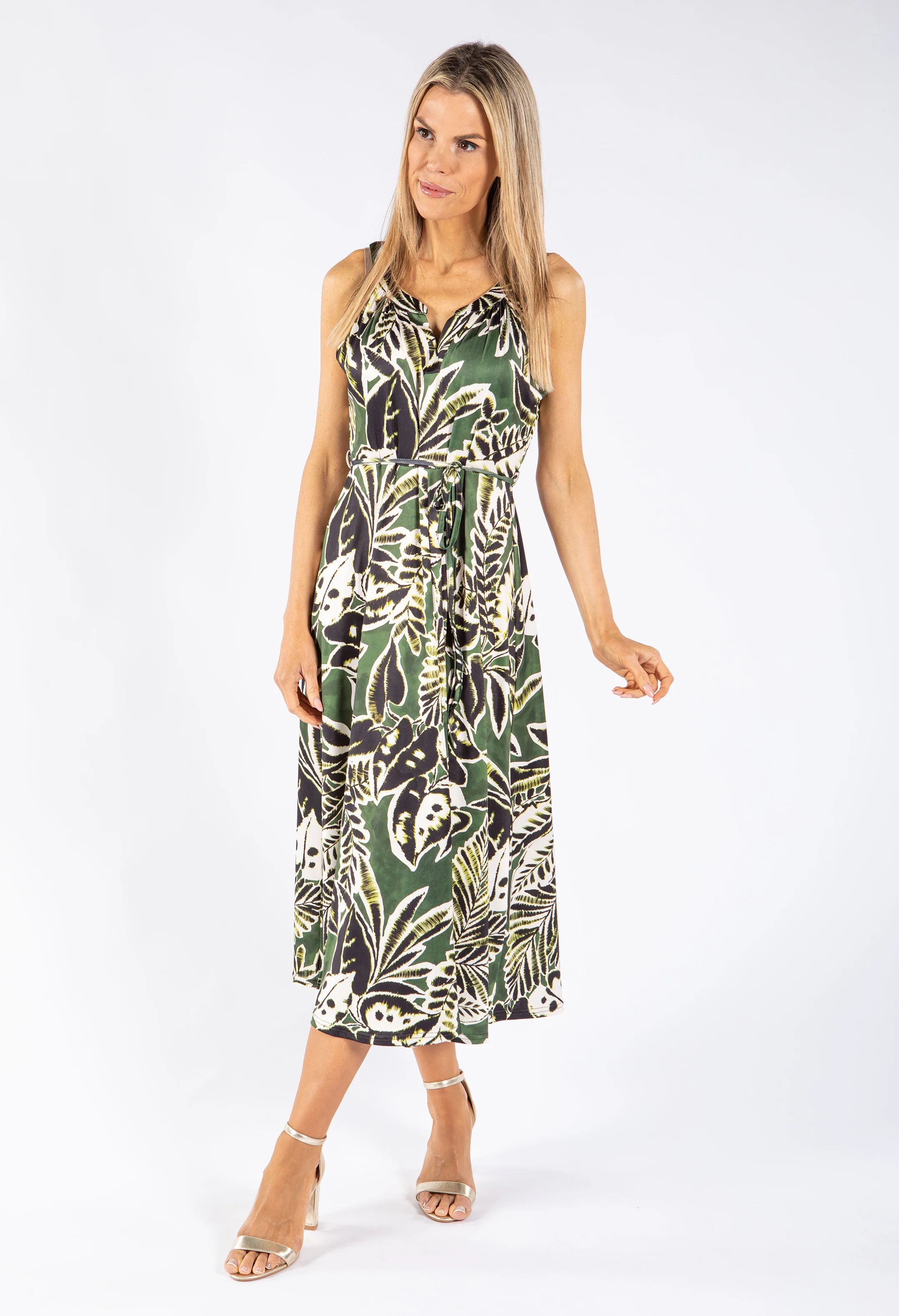 Leaf Print Sleeveless Dress
