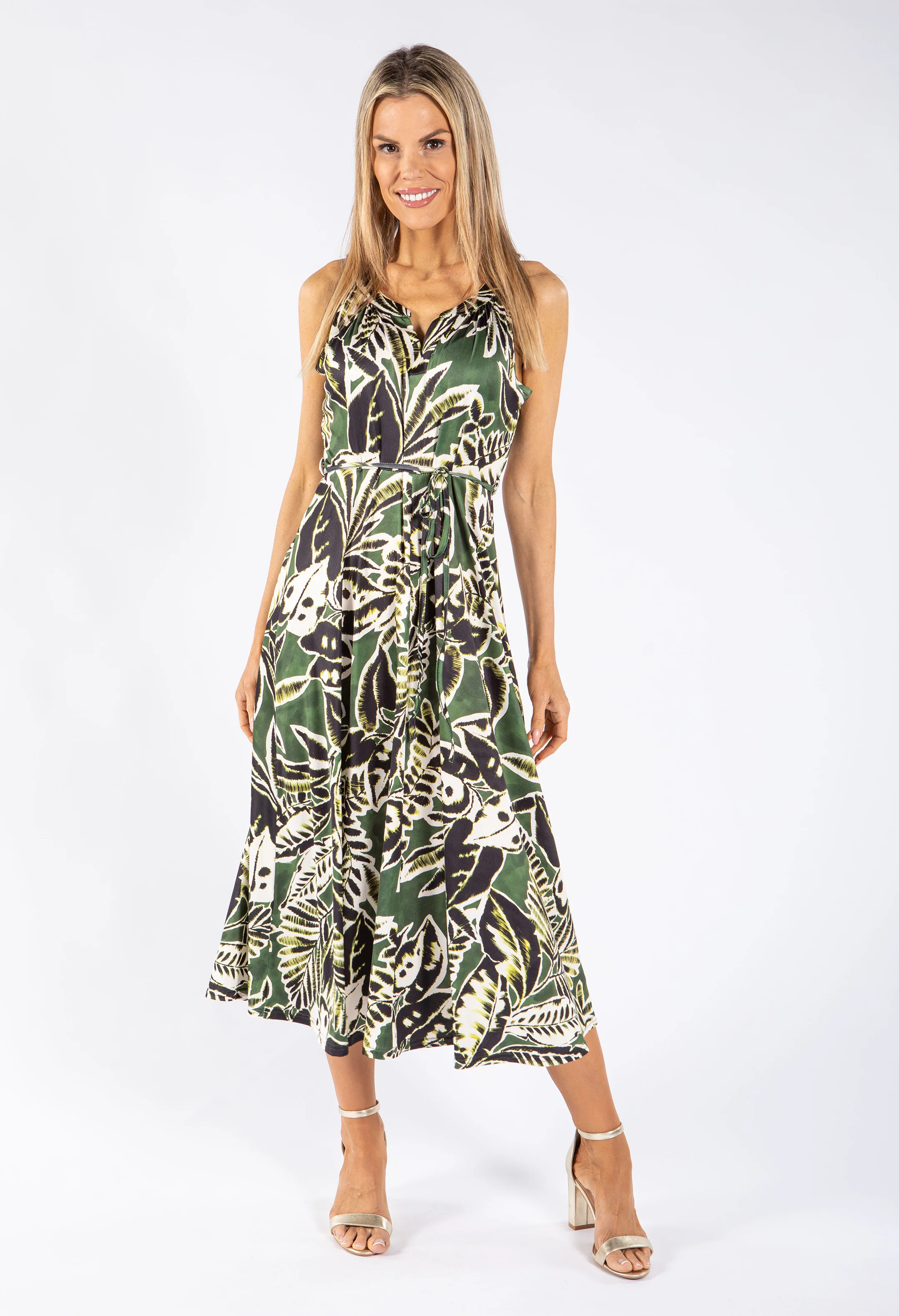 Leaf Print Tie Waist Dress