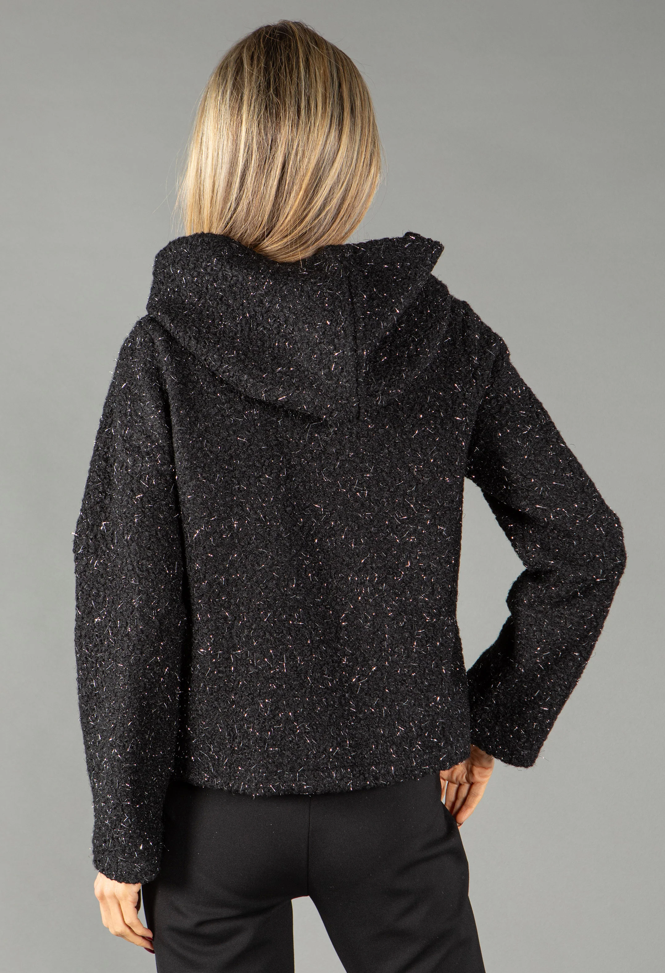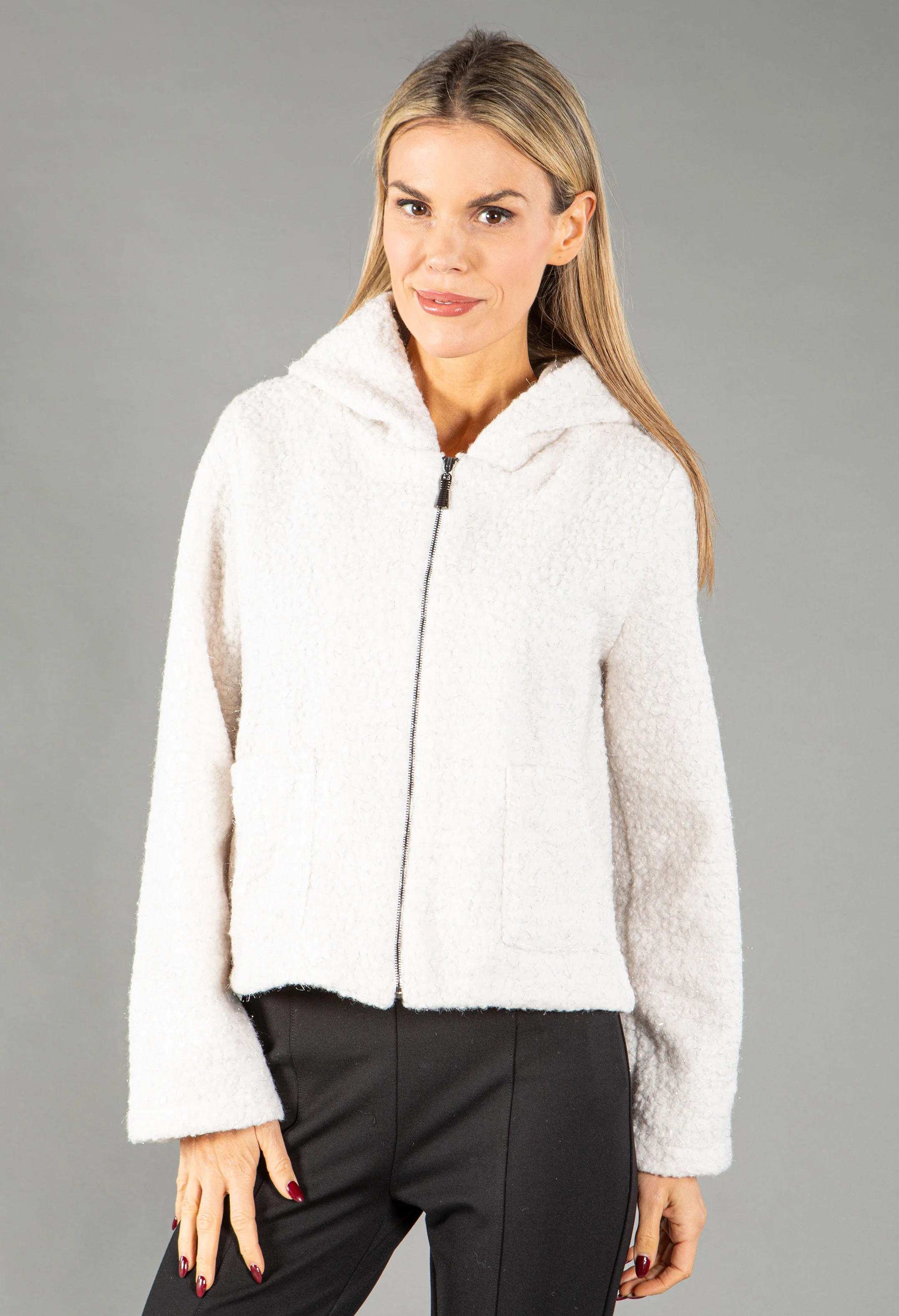 Foiling Detail Zip Up Boucle Jacket