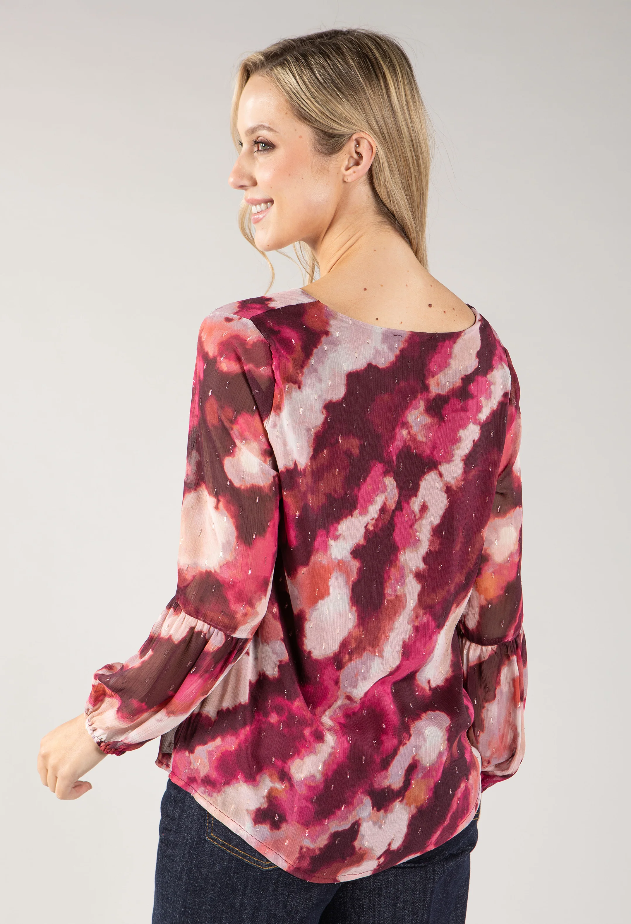 Foiled Detailing V Neck Top