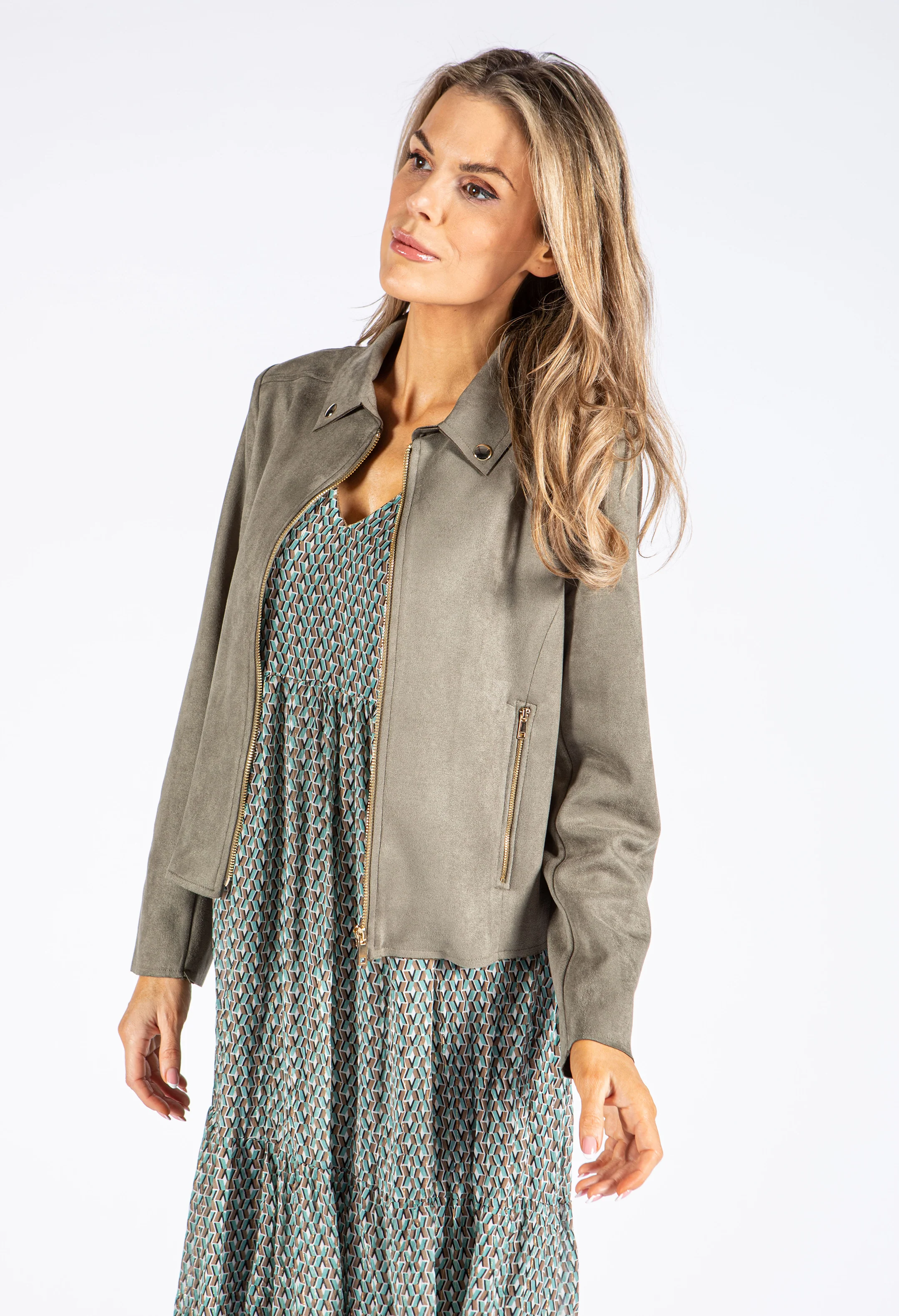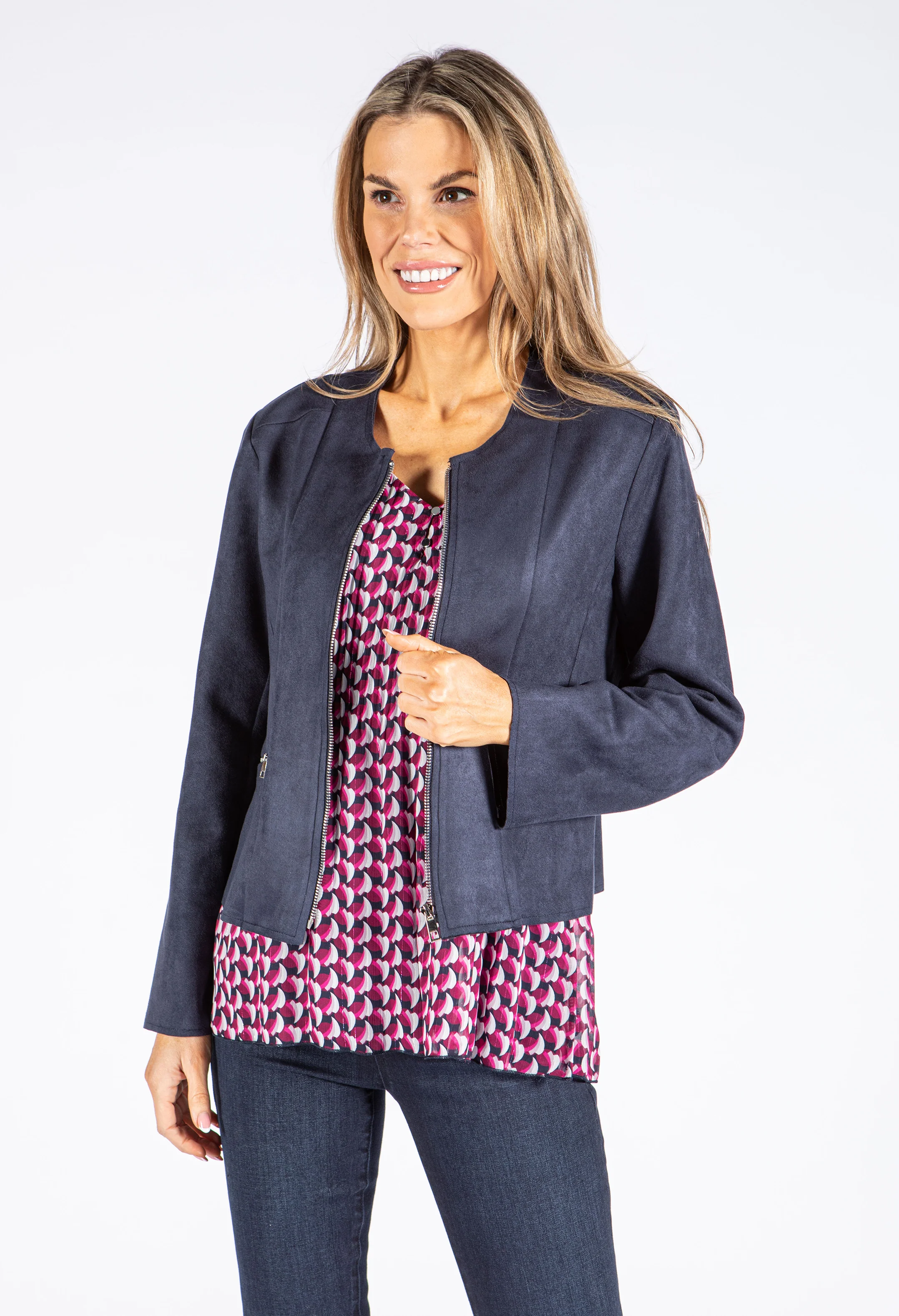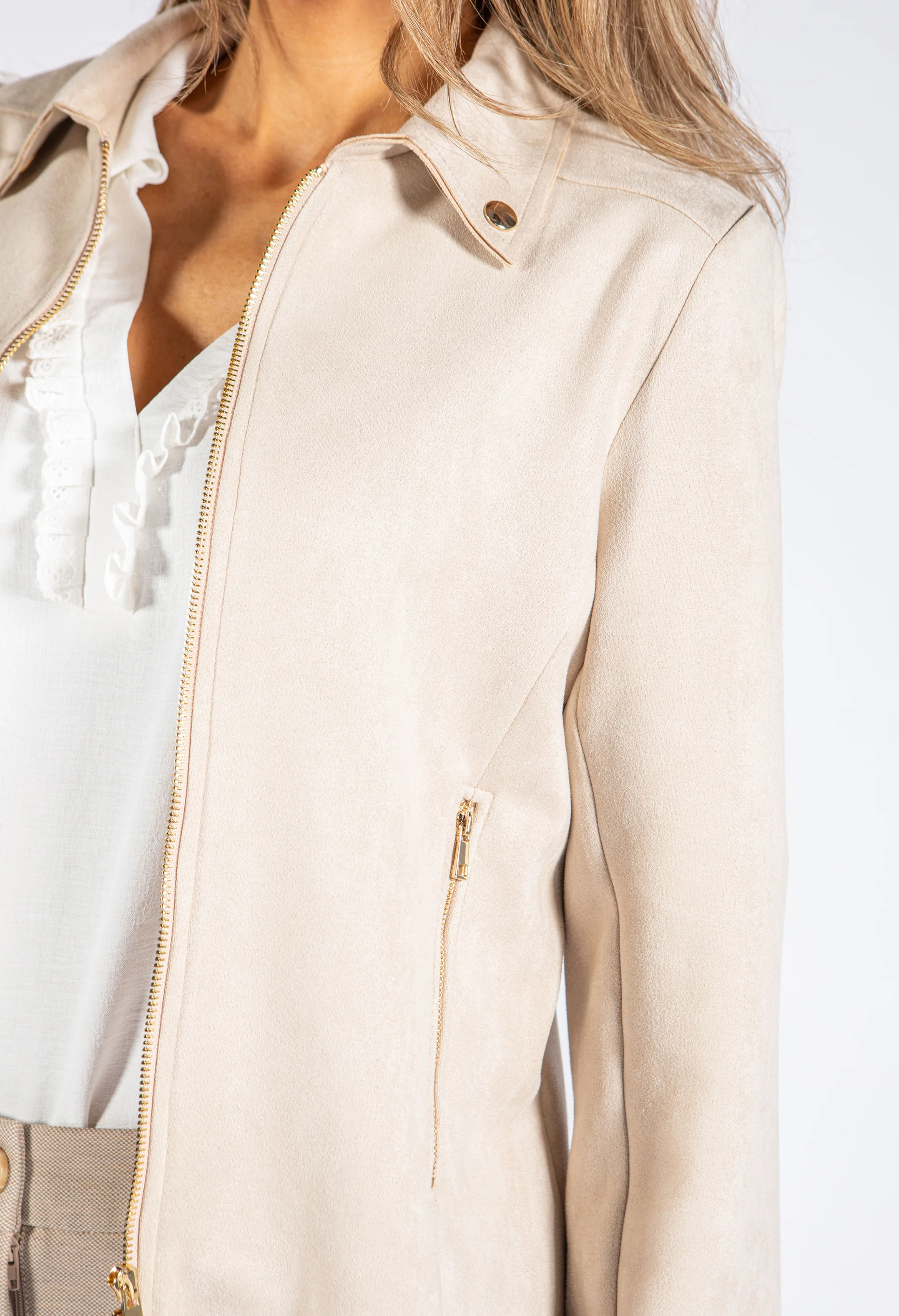 Faux Suede Zip Up Jacket