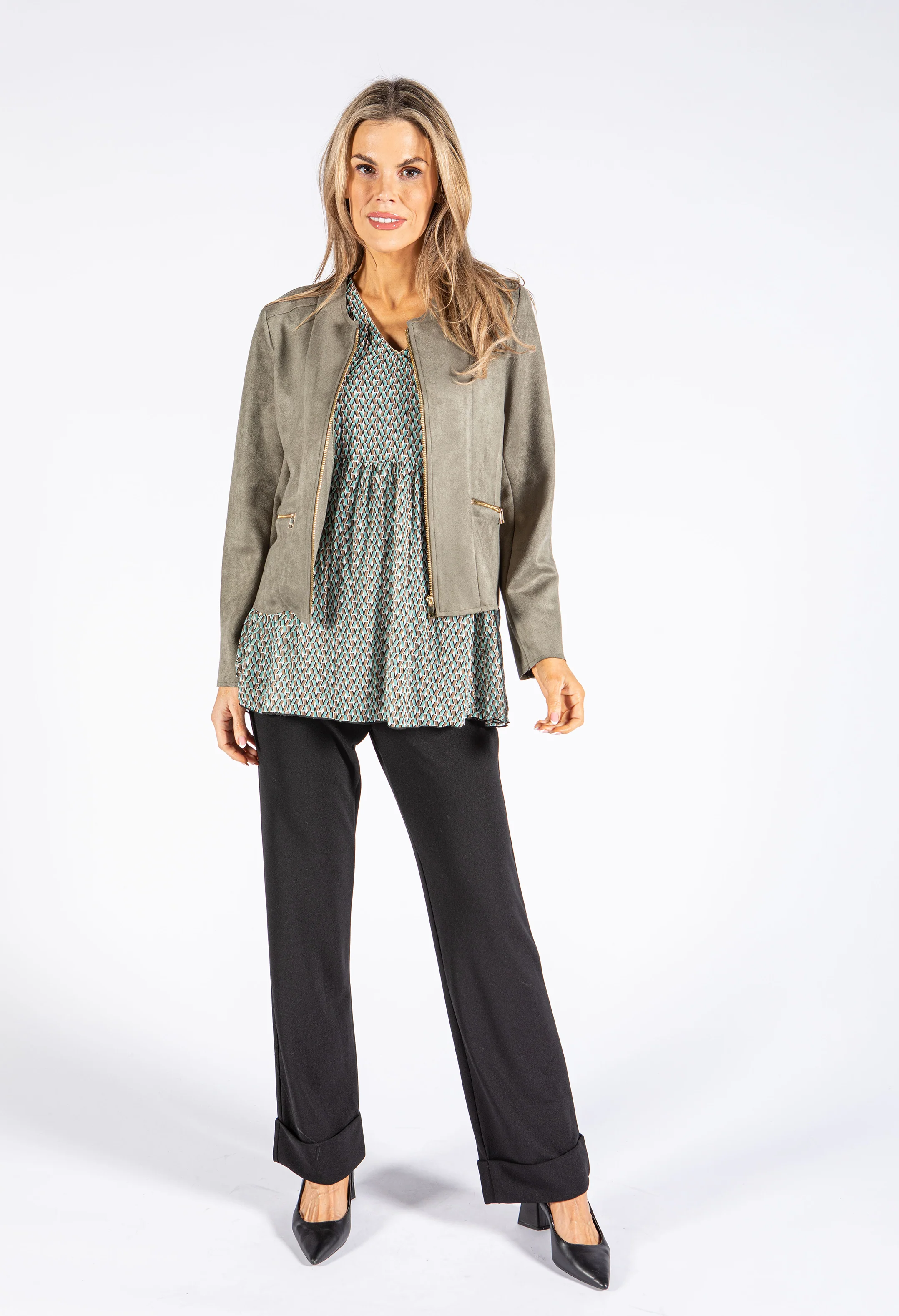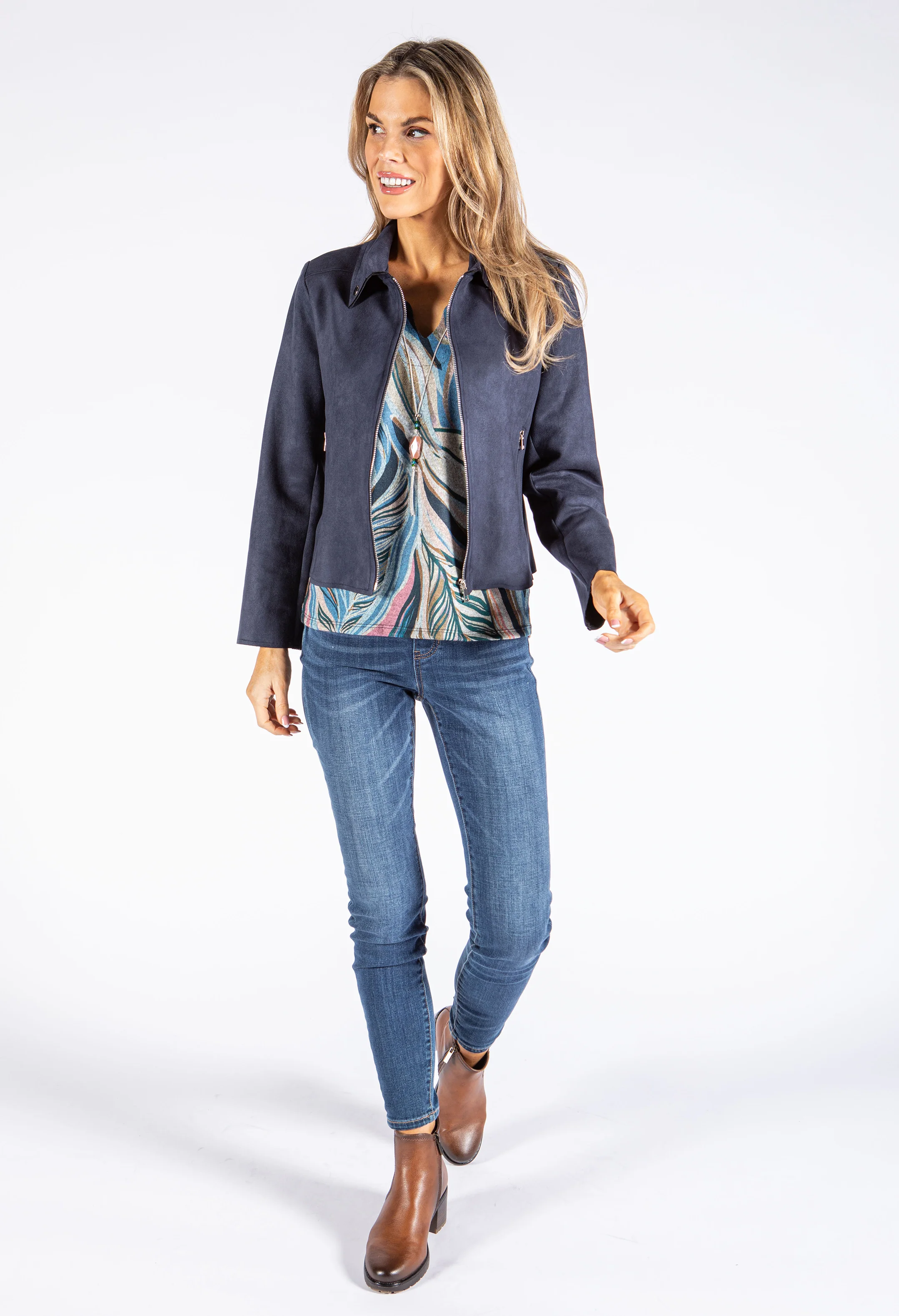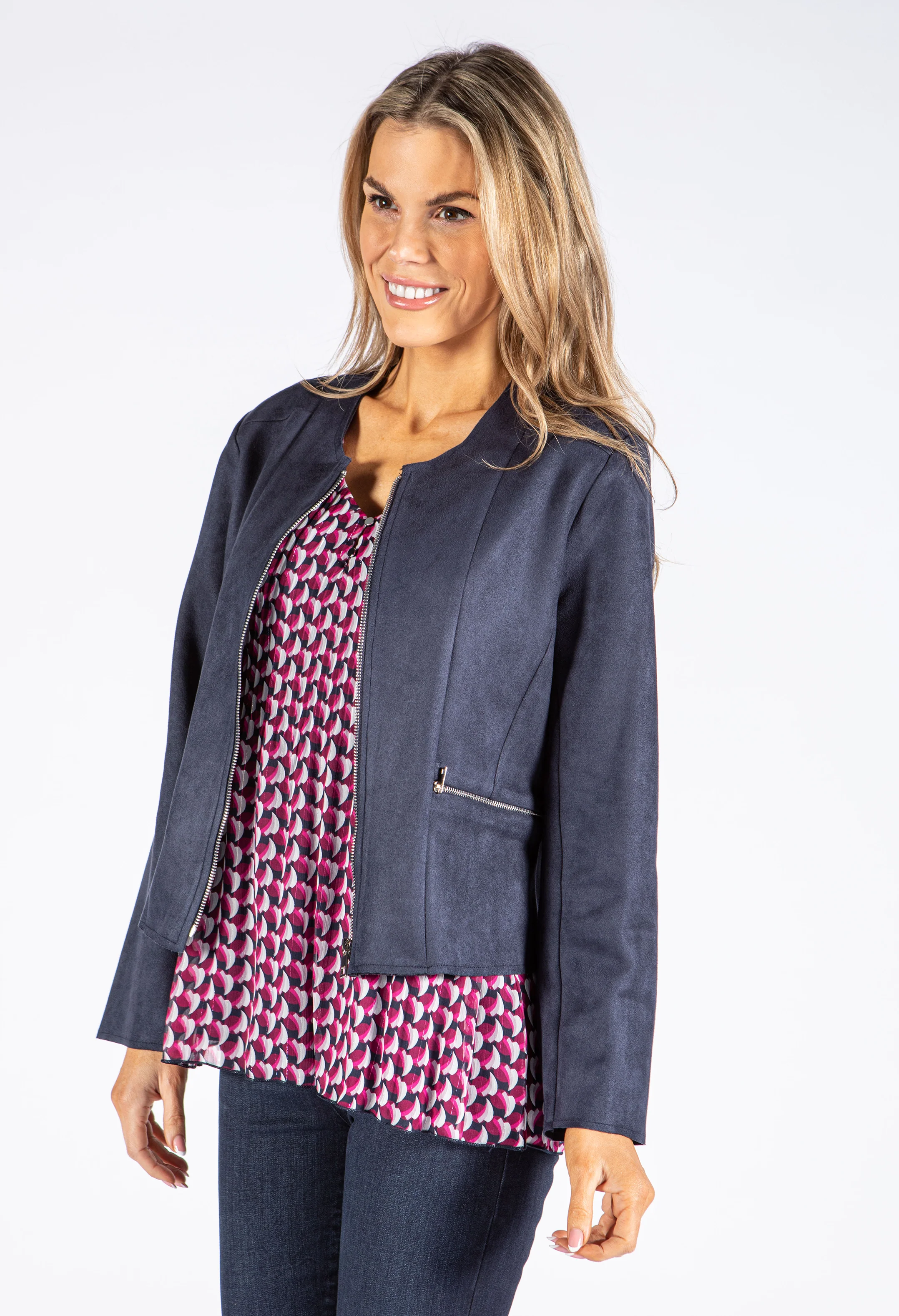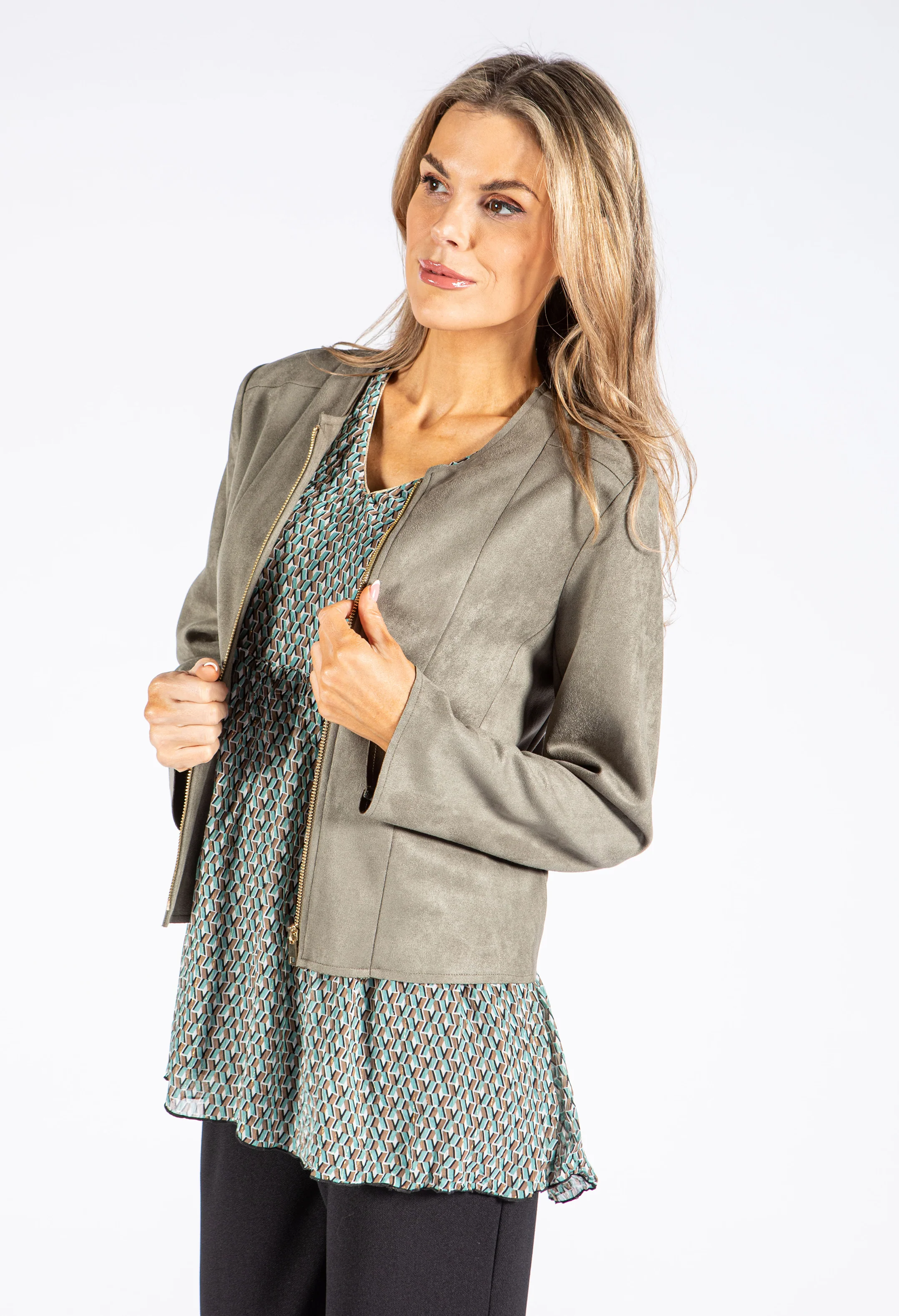Faux Suede Zip Up Jacket