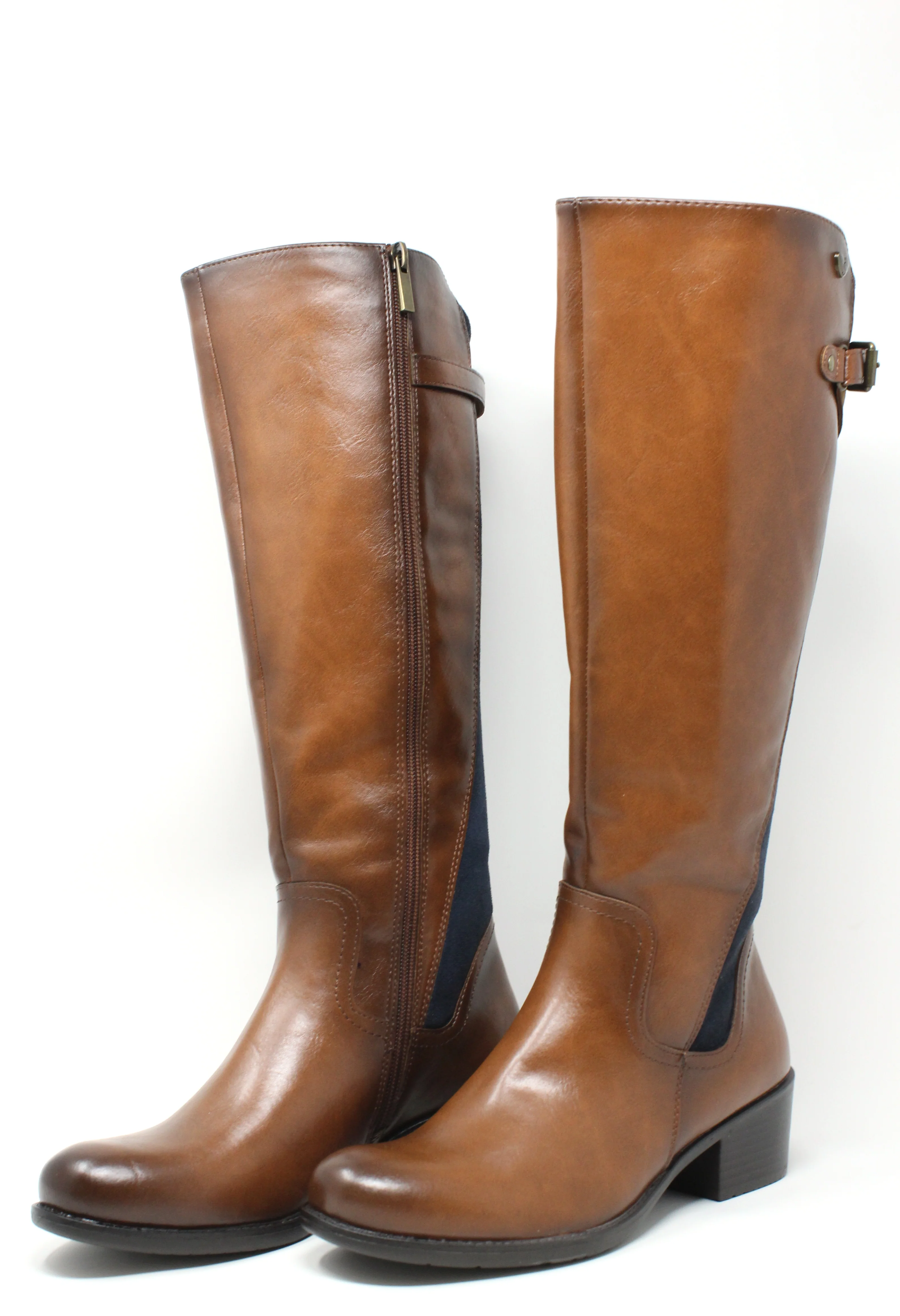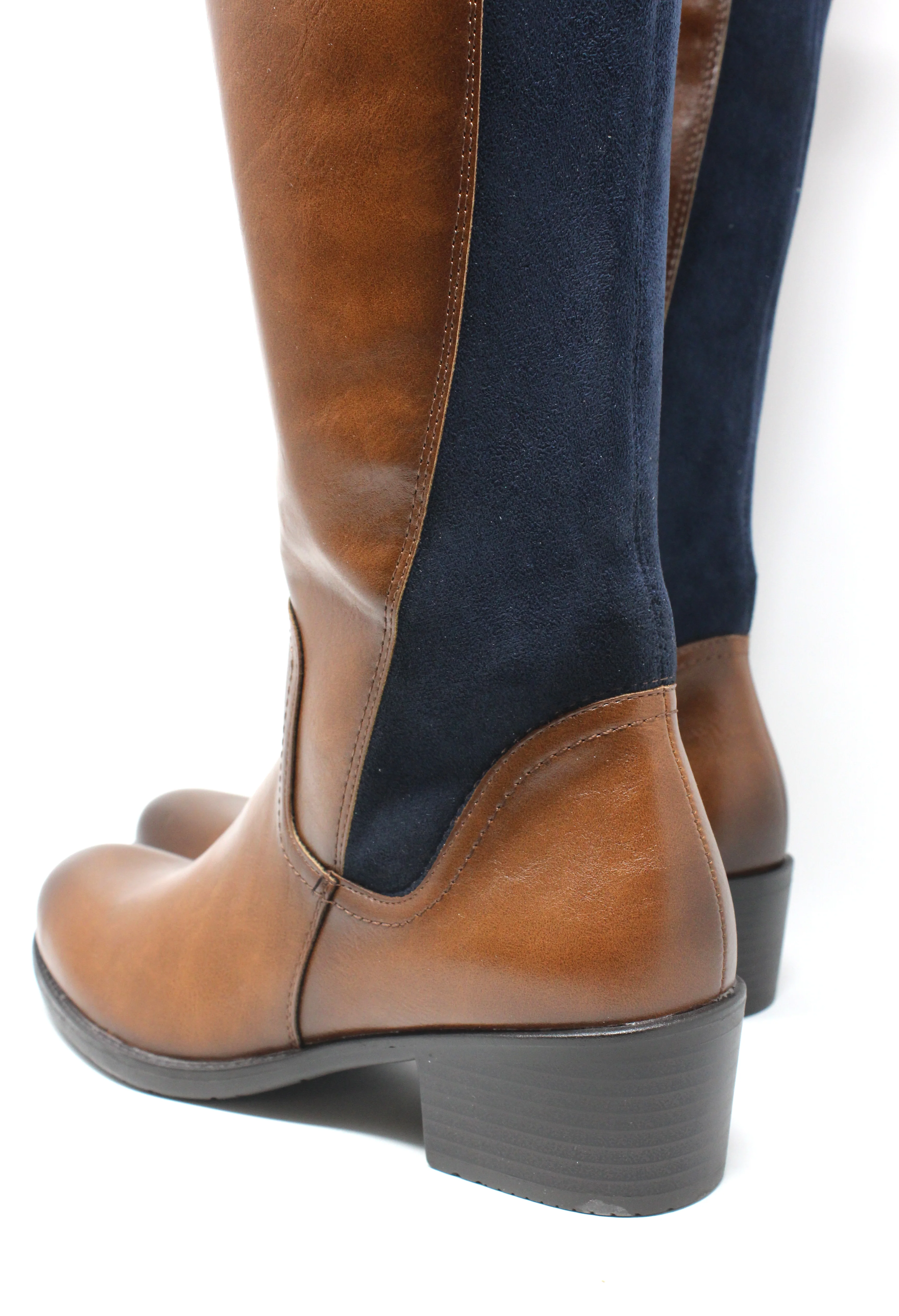 Faux Suede Panel Knee High Boots