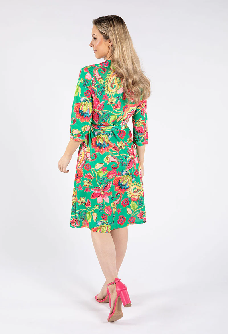 Faux Wrap Floral Paisley Print Dress