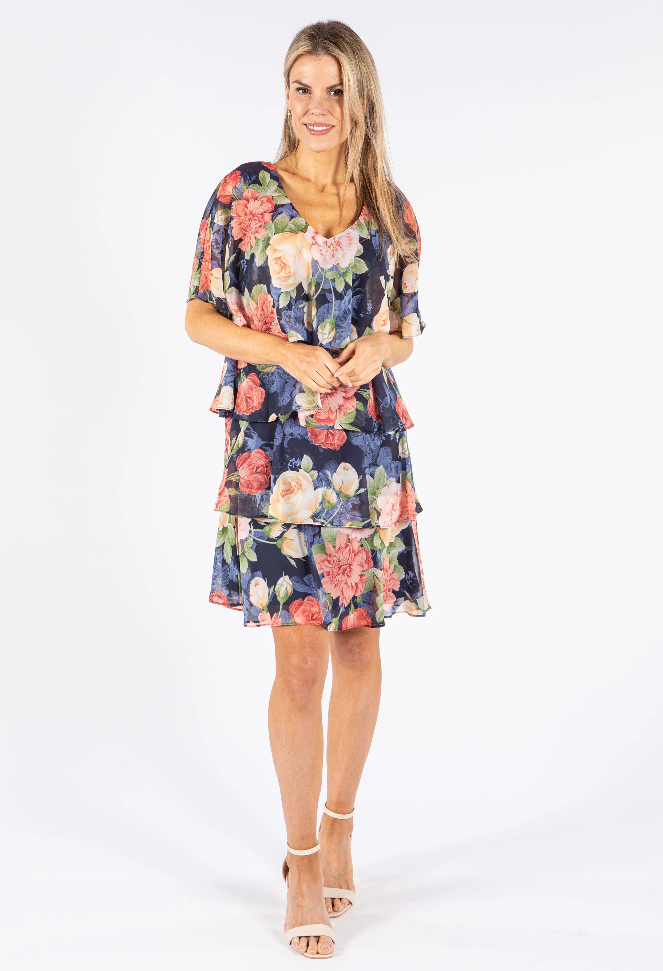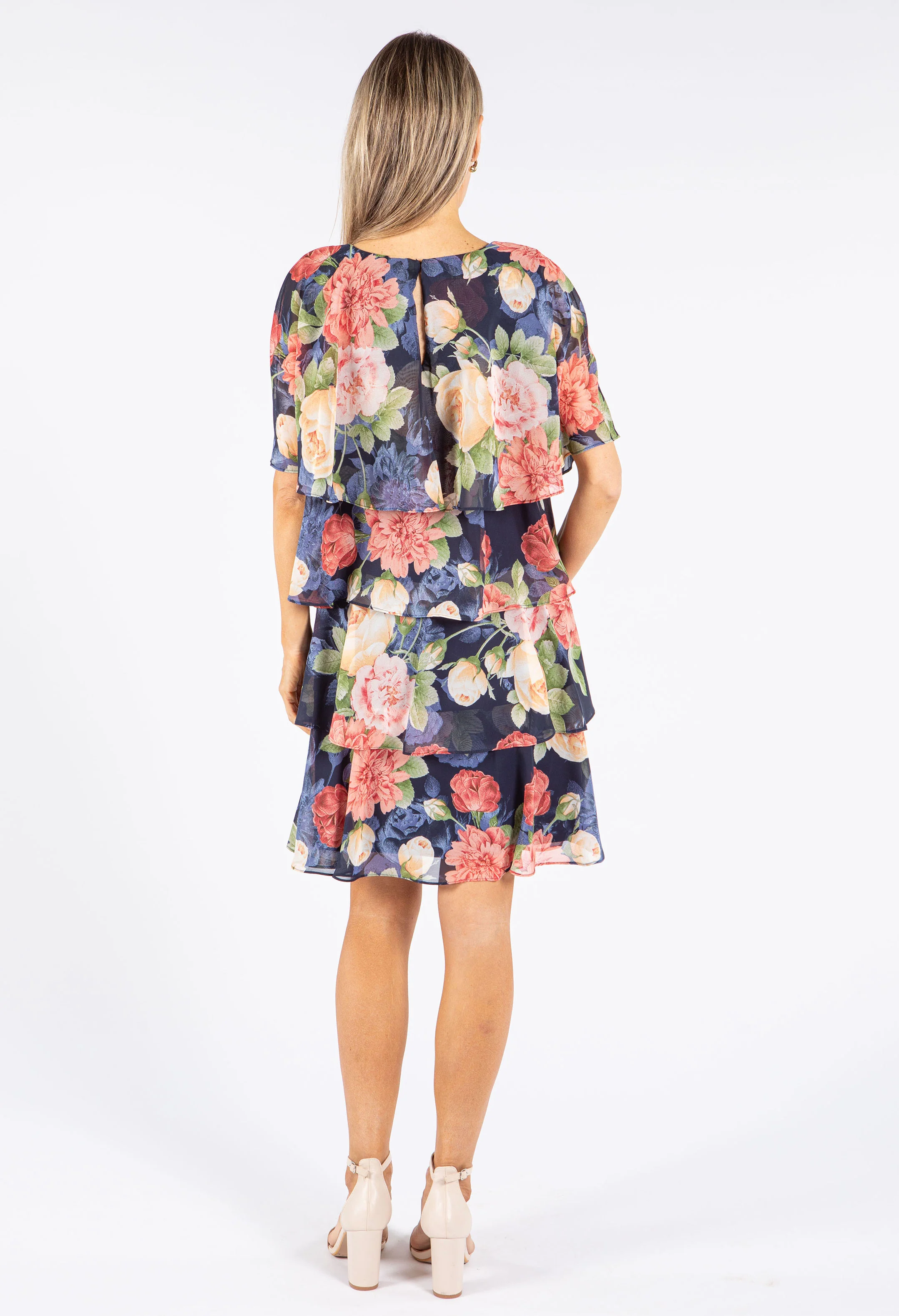 Faded Floral Tiered Dress