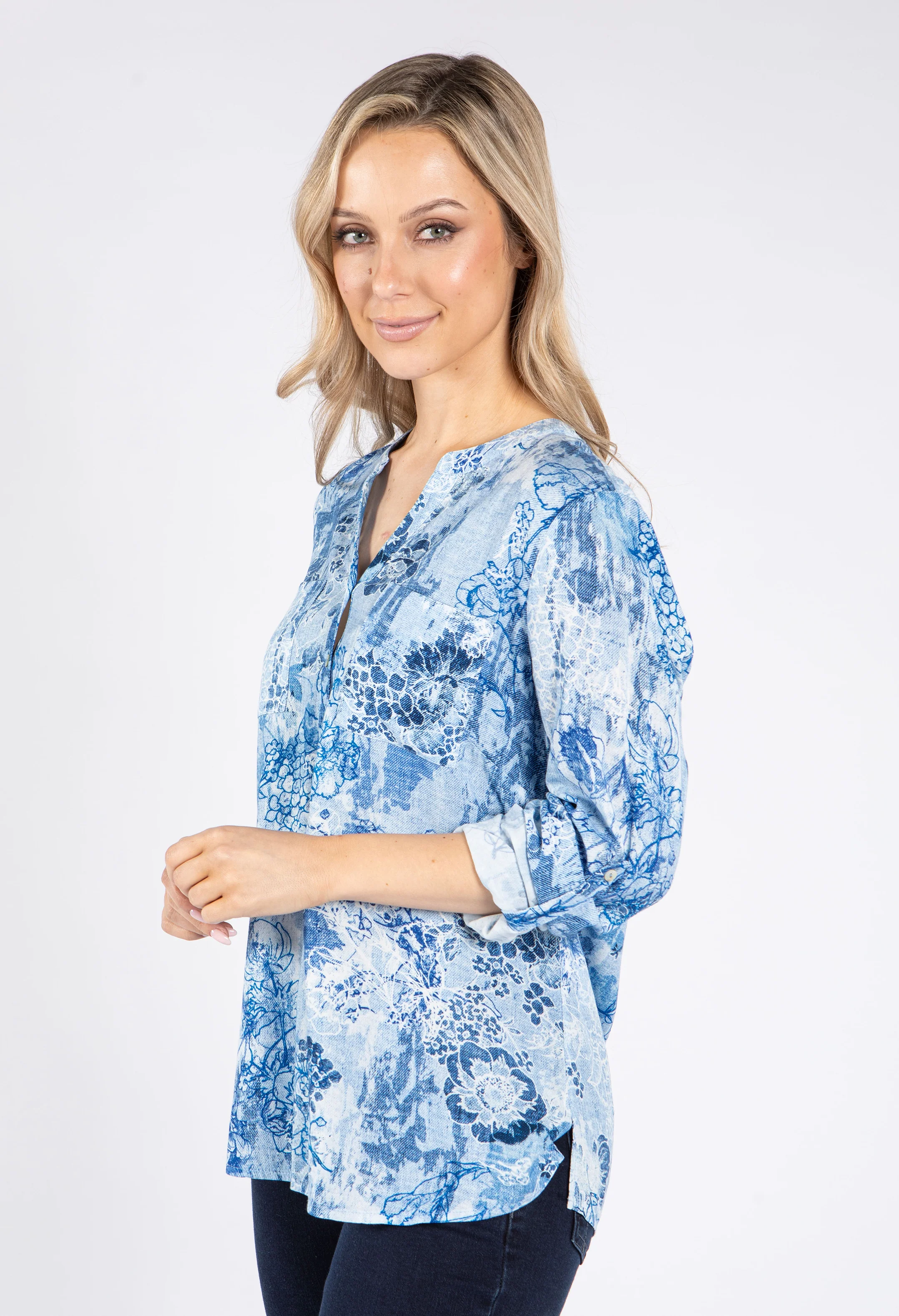 Faint Floral Denim Optic Top