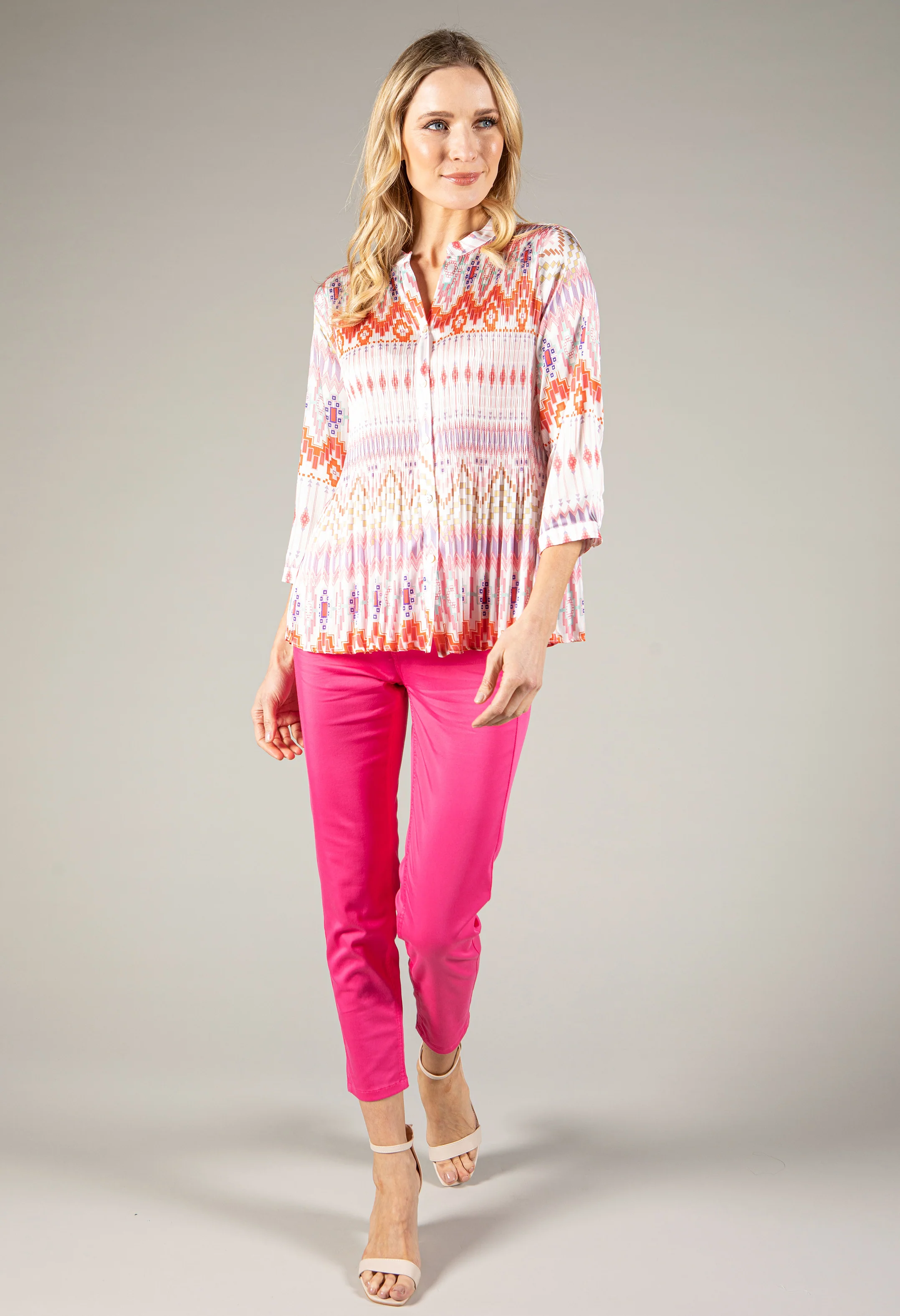7/8-length trousers with vertical pin tucks
