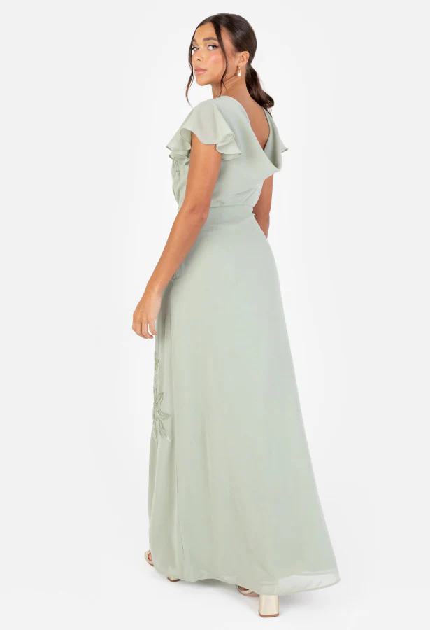 Sage Green Floral Embroidered Cowl Back Maxi Dress