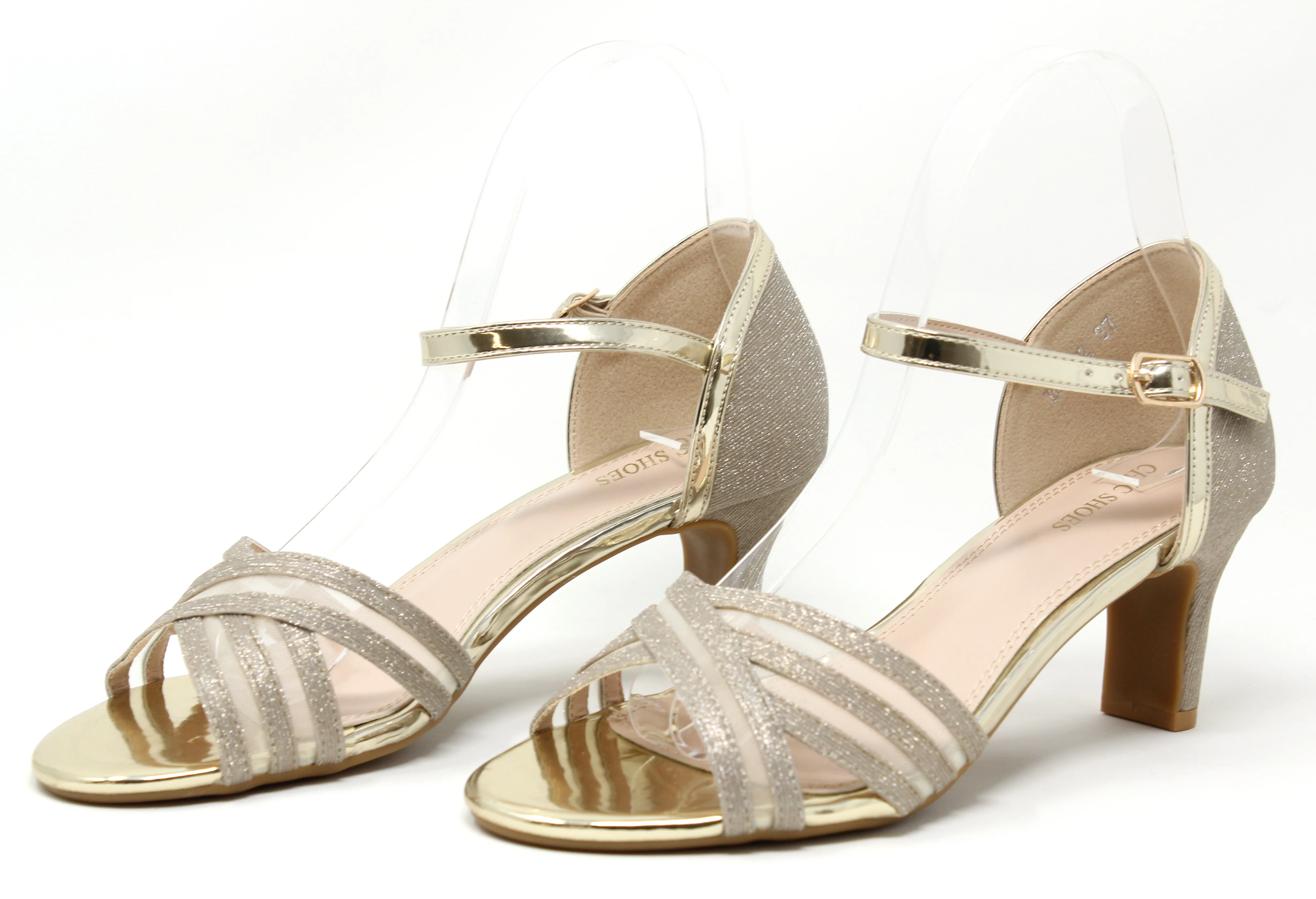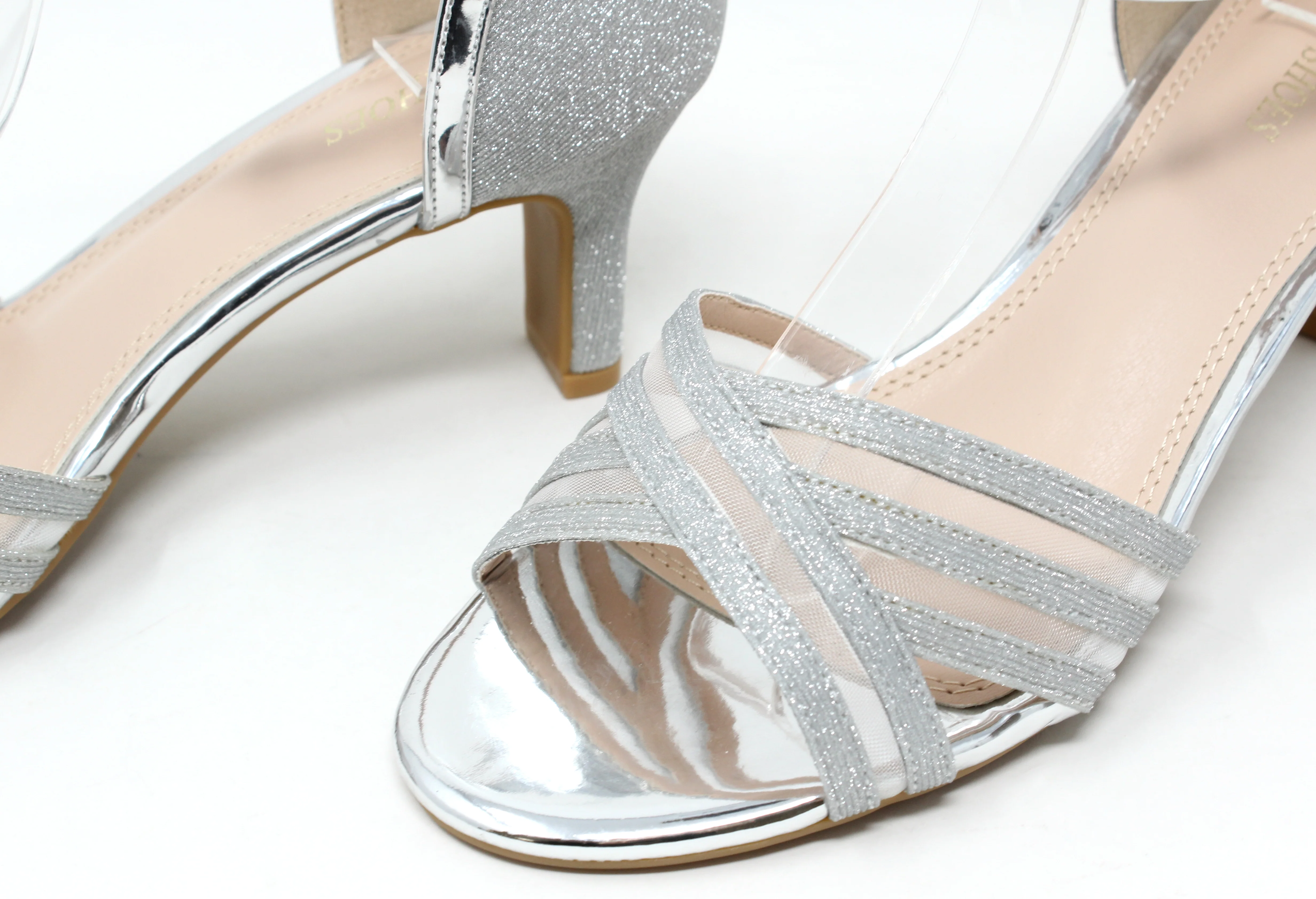 Silver Mid Heel Peep Toe Shoe with Mesh Detail