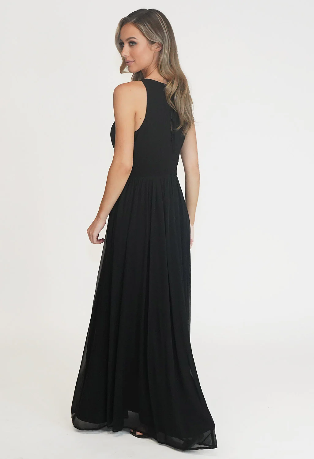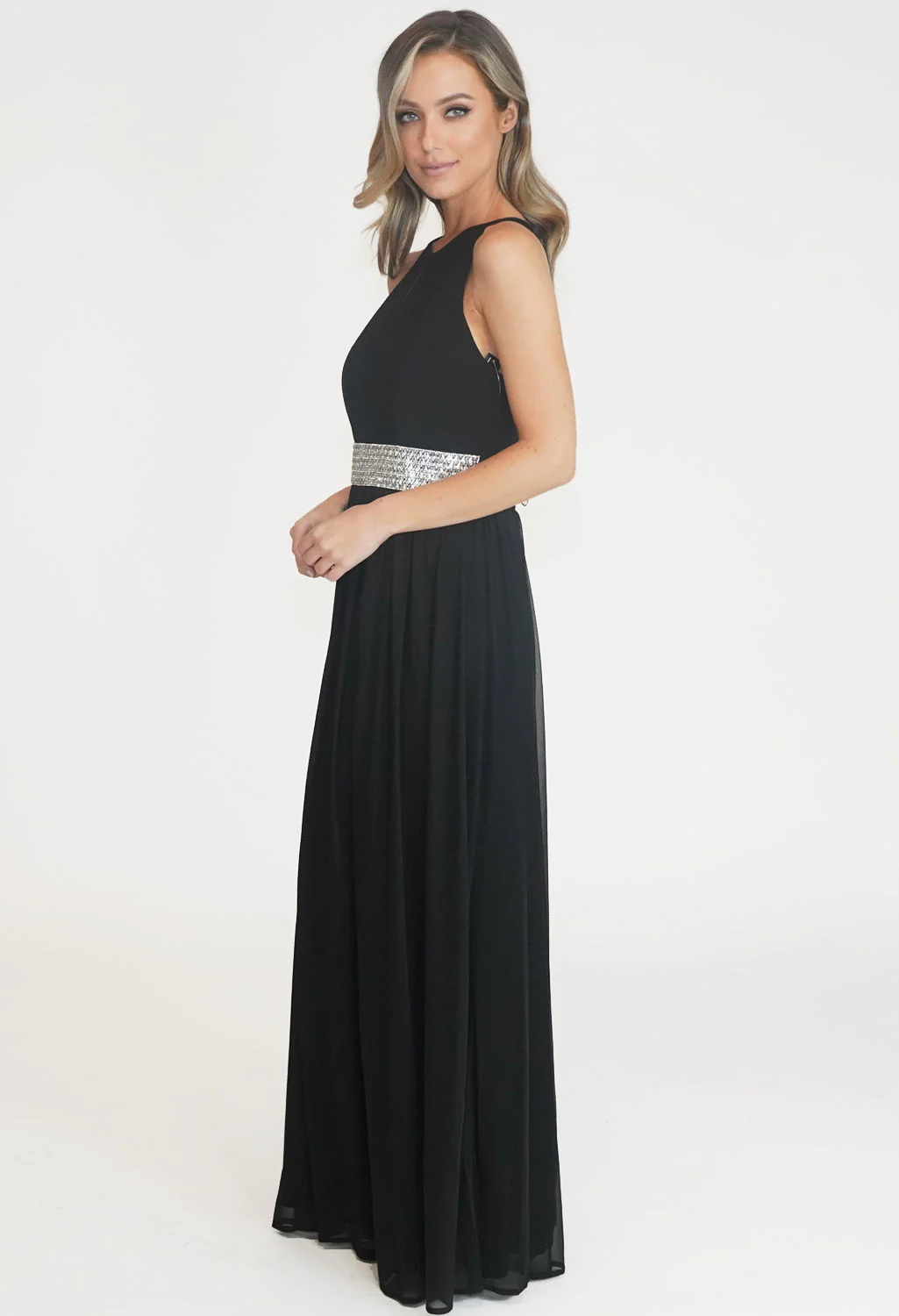 Black RHINESTONE WAIST DETAIL DRESS