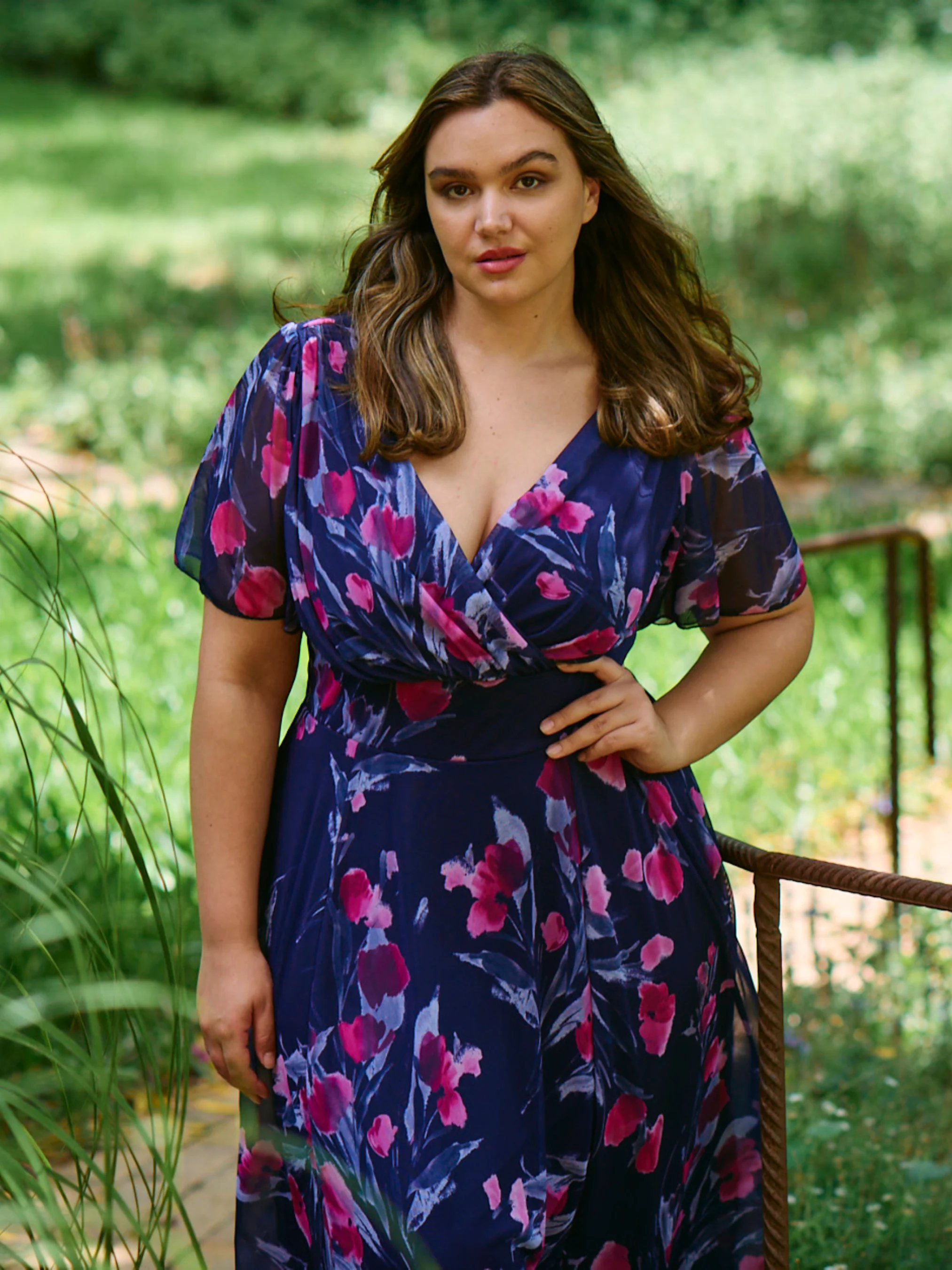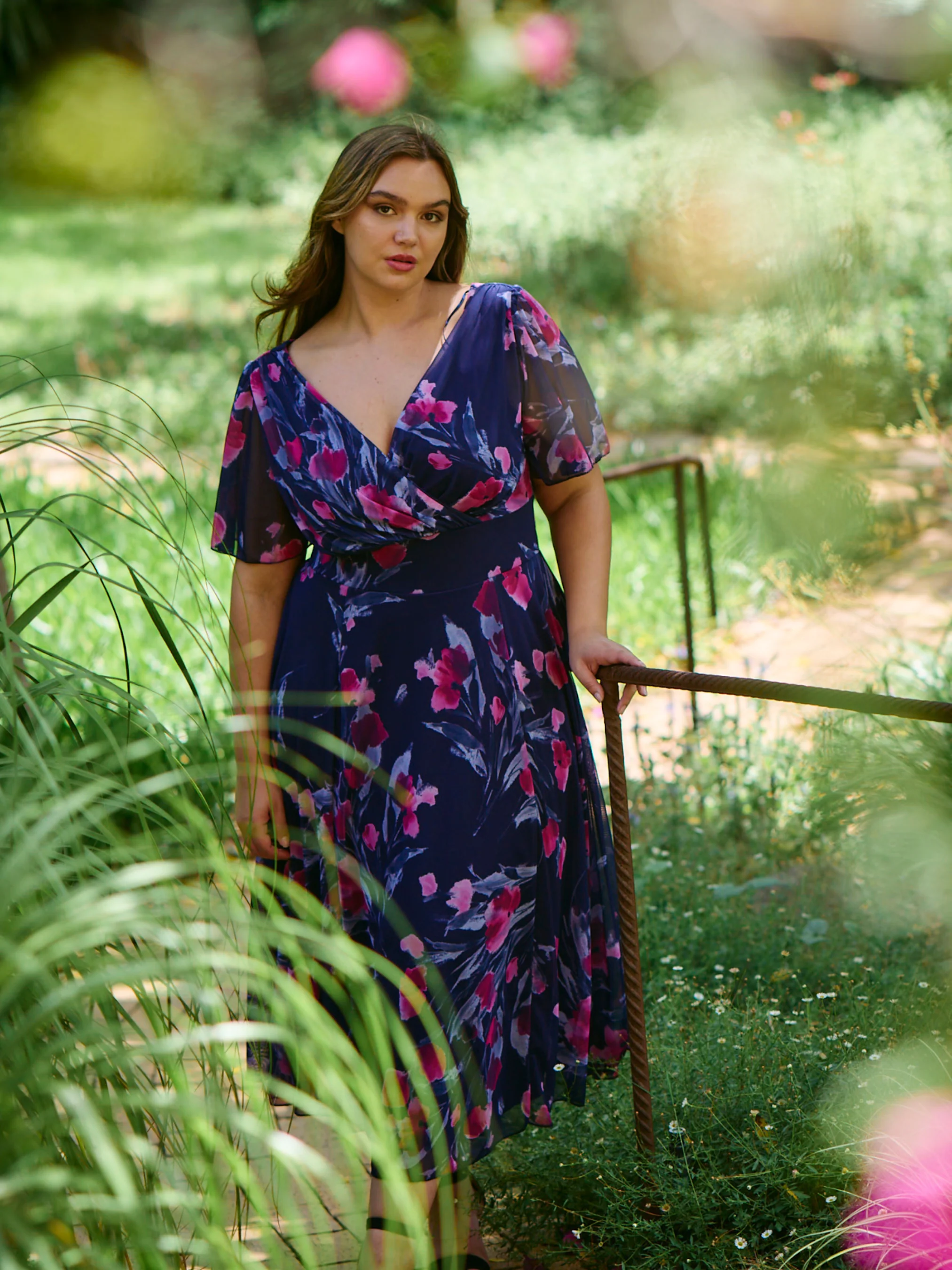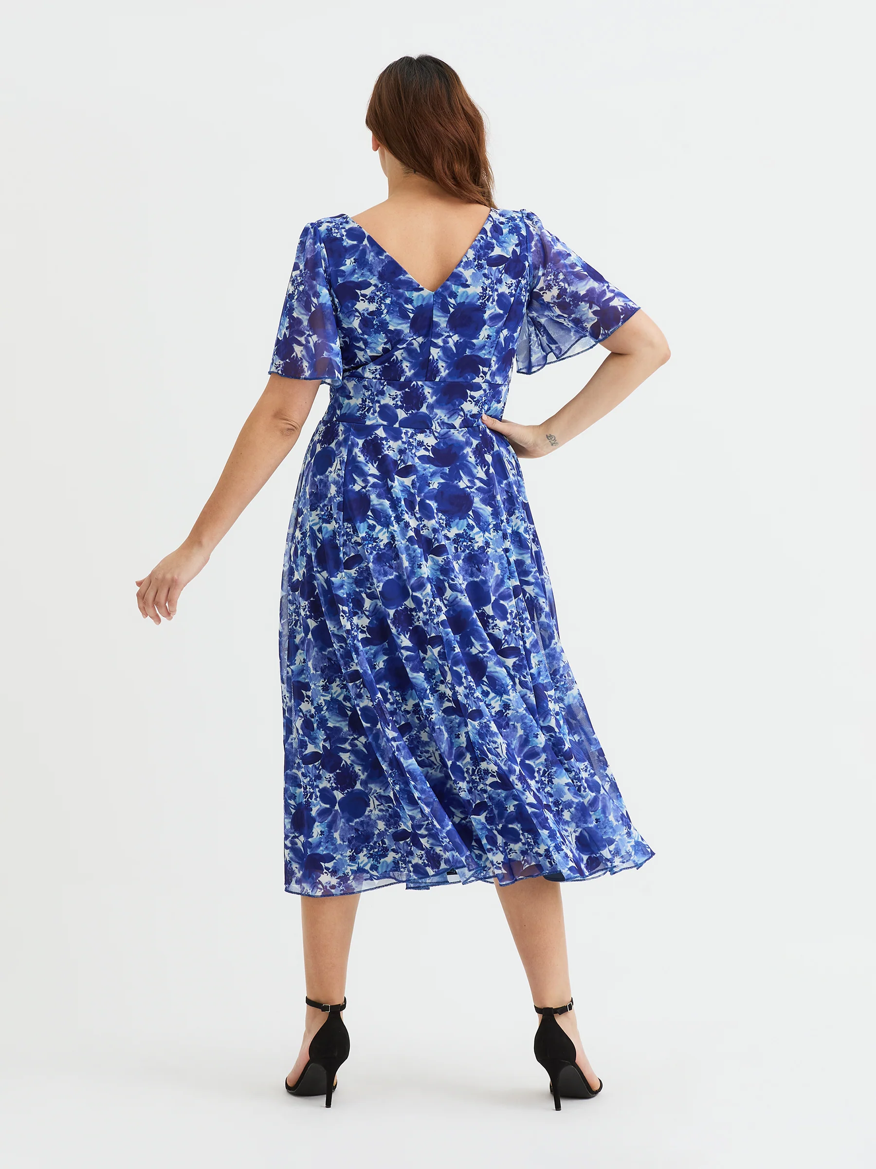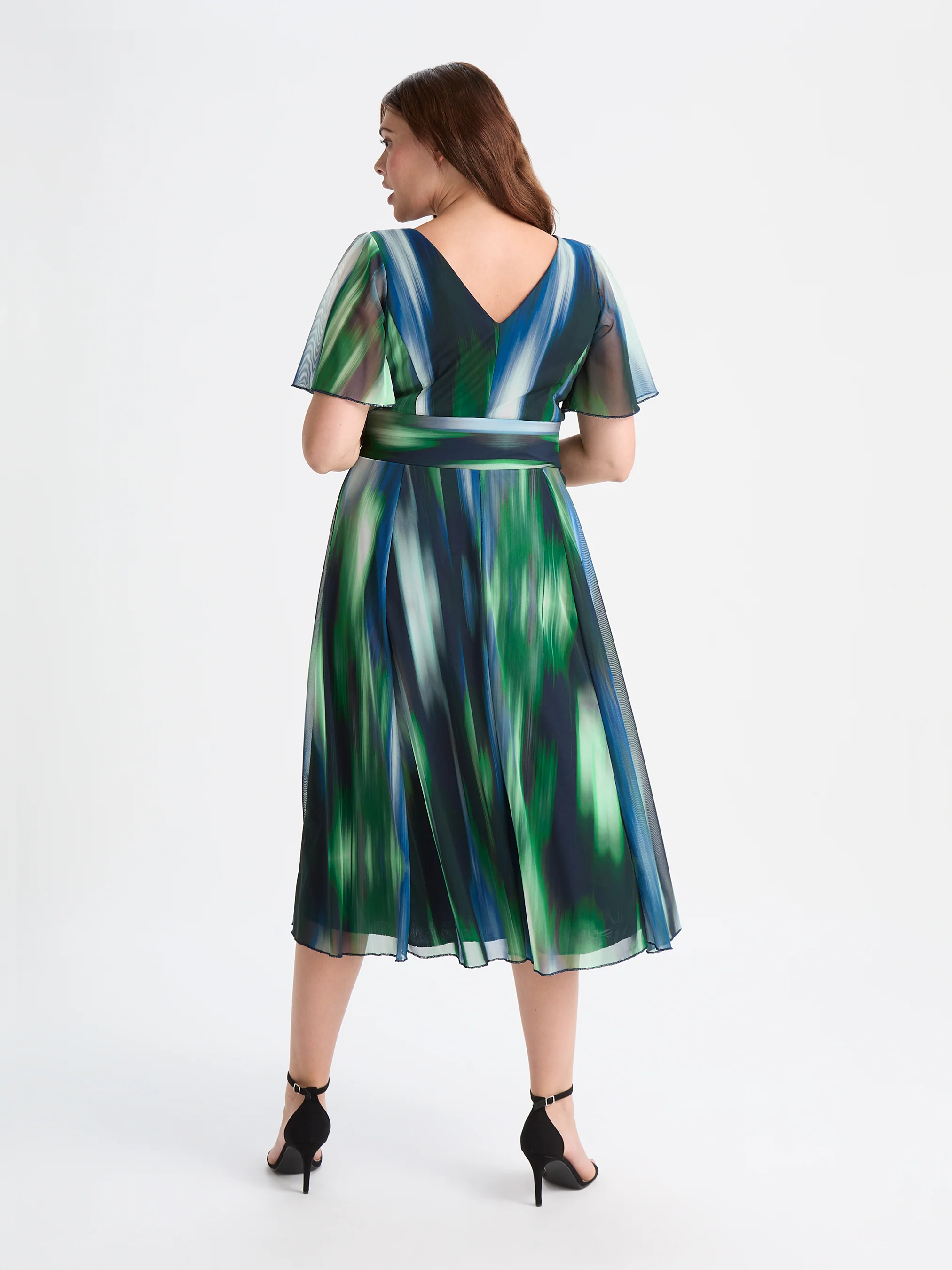 Victoria Angel Sleeve Mesh Midi Curve+ Dress